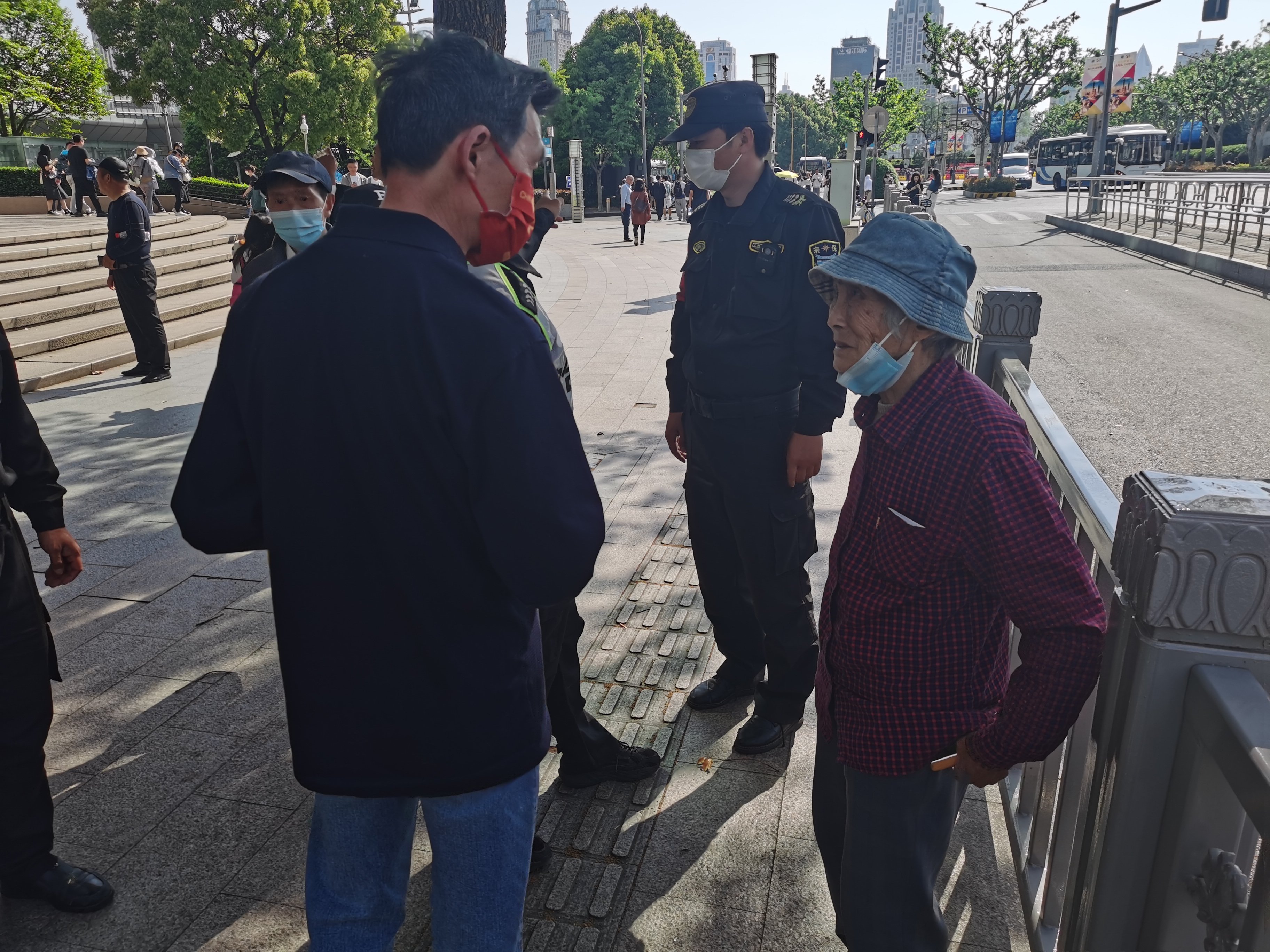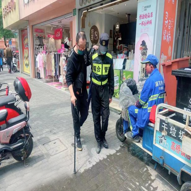 4月28日,宗保公司驻浦东新区高桥市容项目员工帮助摔倒大叔。