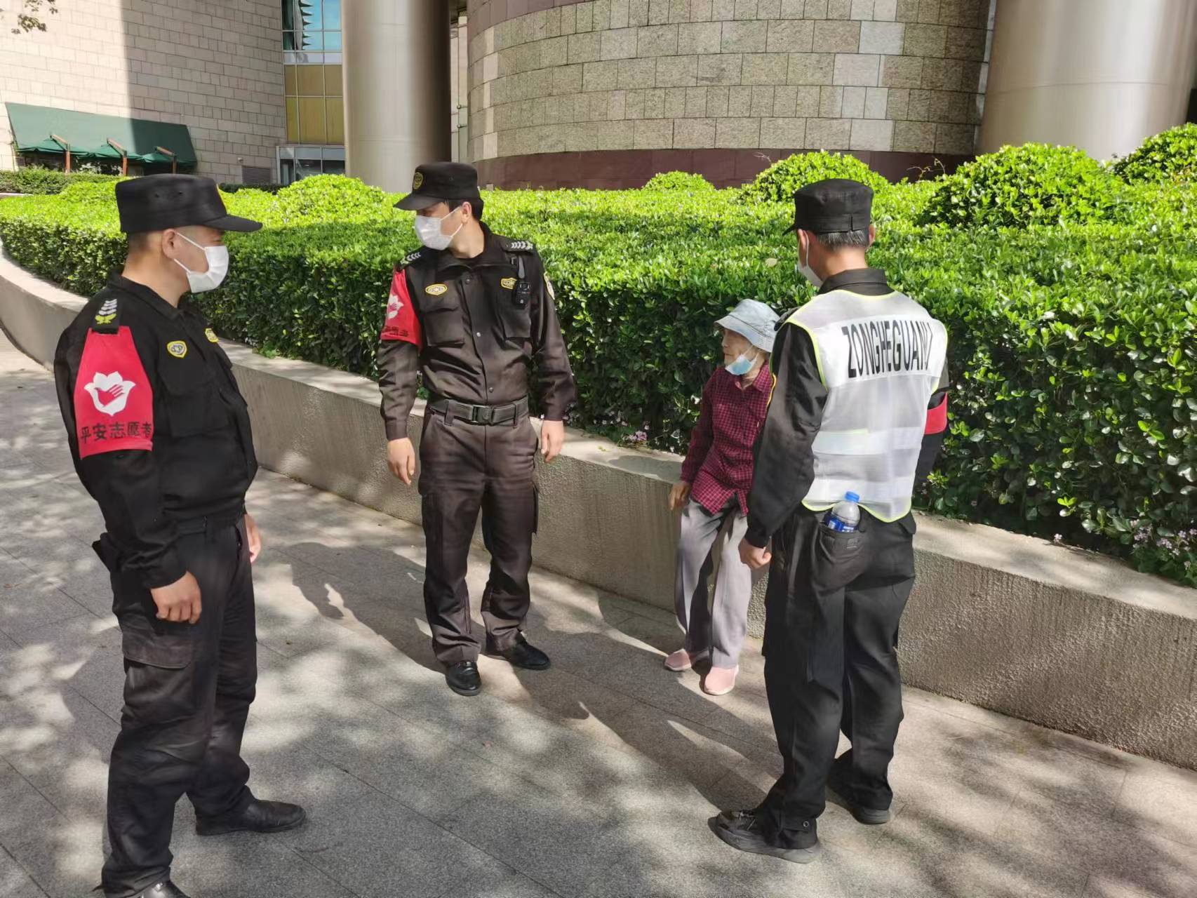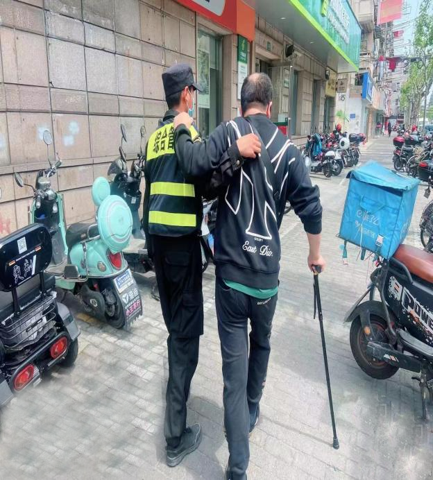 4月24日,宗保公司驻浦东新区新场派出所辅助项目员工帮助迷路老人回家。