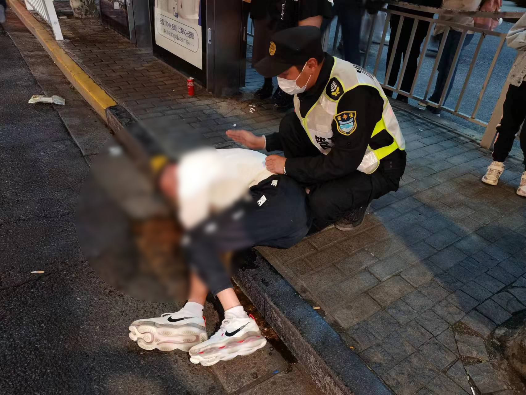 男子醉酒倒在街头 员工暖心守护平安