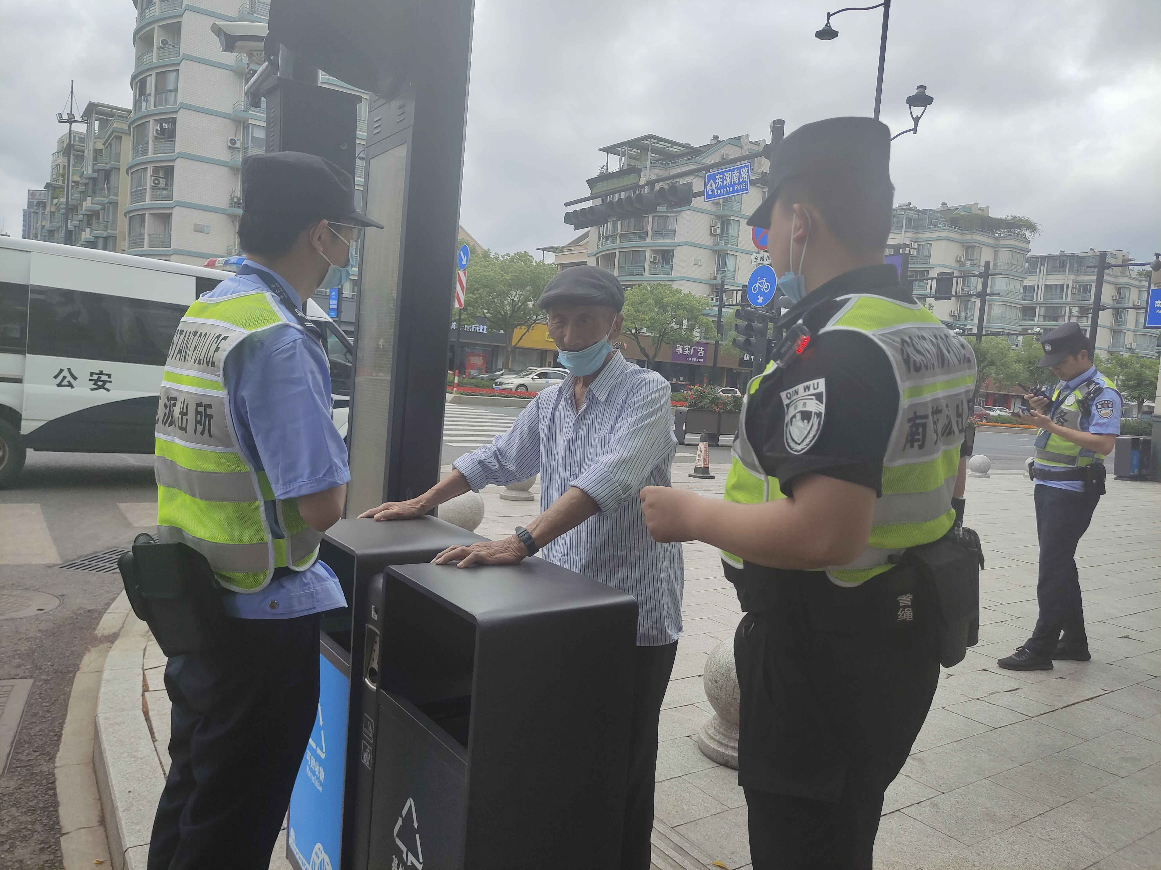 5月5日,浙江民泰公司驻杭州市临平区南苑派出所辅助项目员工帮助迷路老人回家。