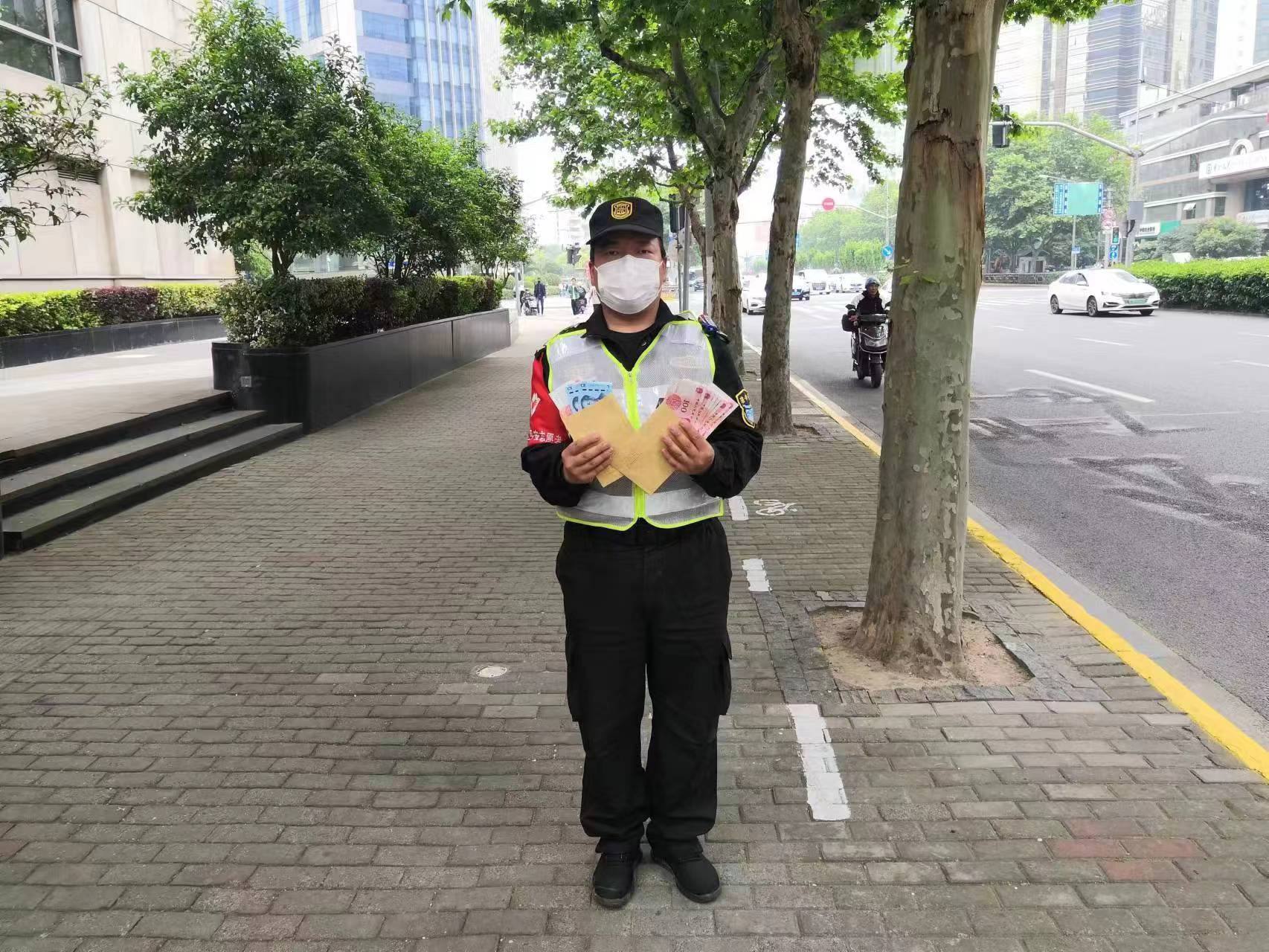 5月12日,宗保公司驻浦东新区陆家嘴综合管理项目员工捡到现金上交民警。