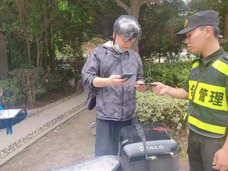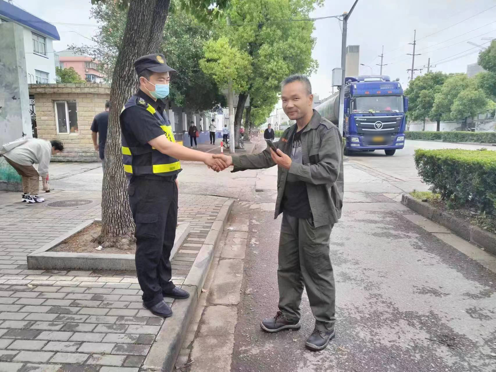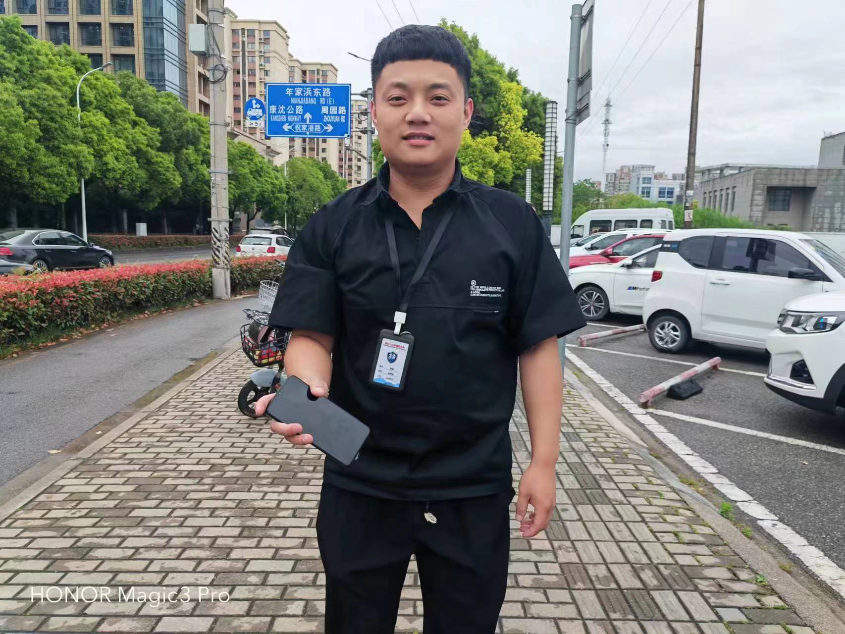 当日6:20,公司员工陈镇在昌运里储运路值勤时,捡到一部黑色华为P40手机,询问周围人员无人认领后,便将情况报告了项目负责人,并按指示边值勤边留意寻找物品的人。