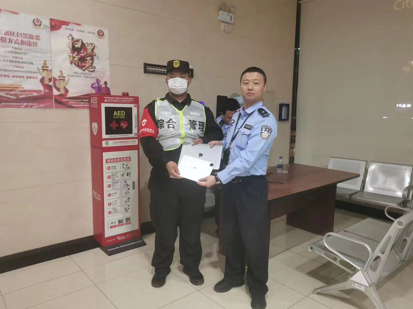 5月18日,宗保公司驻浦东新区陆家嘴综合管理项目员工捡到平板电脑上交民警。