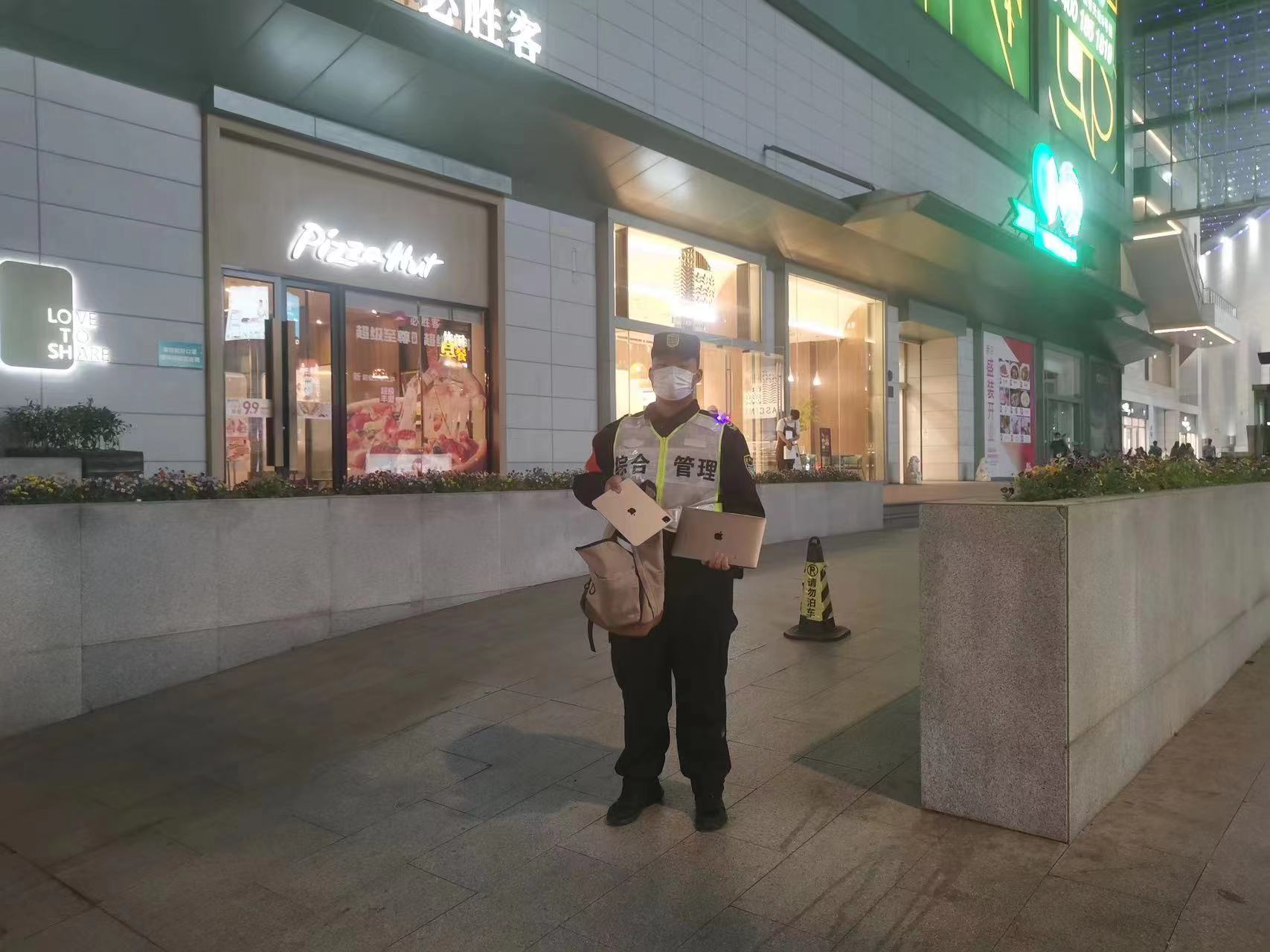 当日18:18,公司员工李东鑫在崮山路栖山路交叉口附近巡逻时,捡到一部华为手机,询问周围人员无果后,便将情况报告了项目负责人,并按指示边巡逻边留意寻找物品的人。