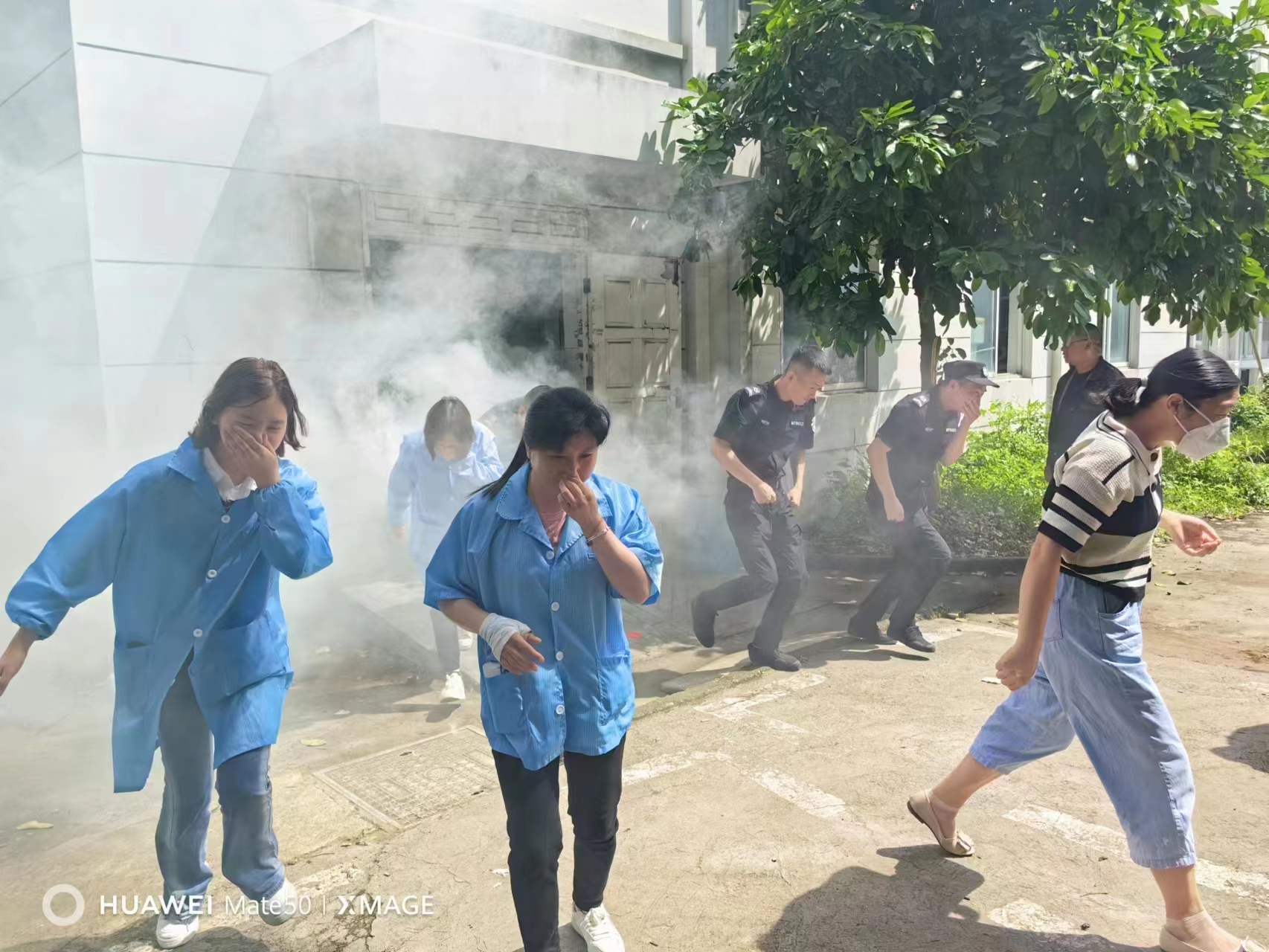 接着,就发生火情组织人员双手捂住口鼻,沿着有标示逃生通道,紧急疏散安全逃生进行了模拟演练。随后,消防安全员讲授了灭火器和消防水带的使用方法、强调了注意事项,组织进行了实际操作练习,使参训人员基本掌握了灭火器材的操作技能。