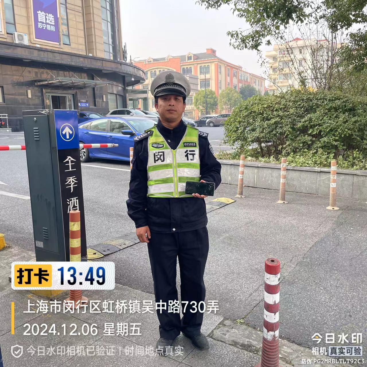 12月6日13:49,宗保公司驻闵行区虹桥交管辅助项目员工丁雄师在吴中路虹许路路口执勤时,捡到一部华为手机。