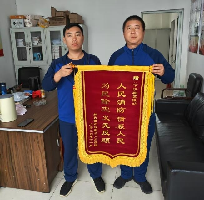 浦东新区航头镇下沙社区微站获赠绣有“人民消防 情系人民 为民除灾 义无反顾”的锦旗