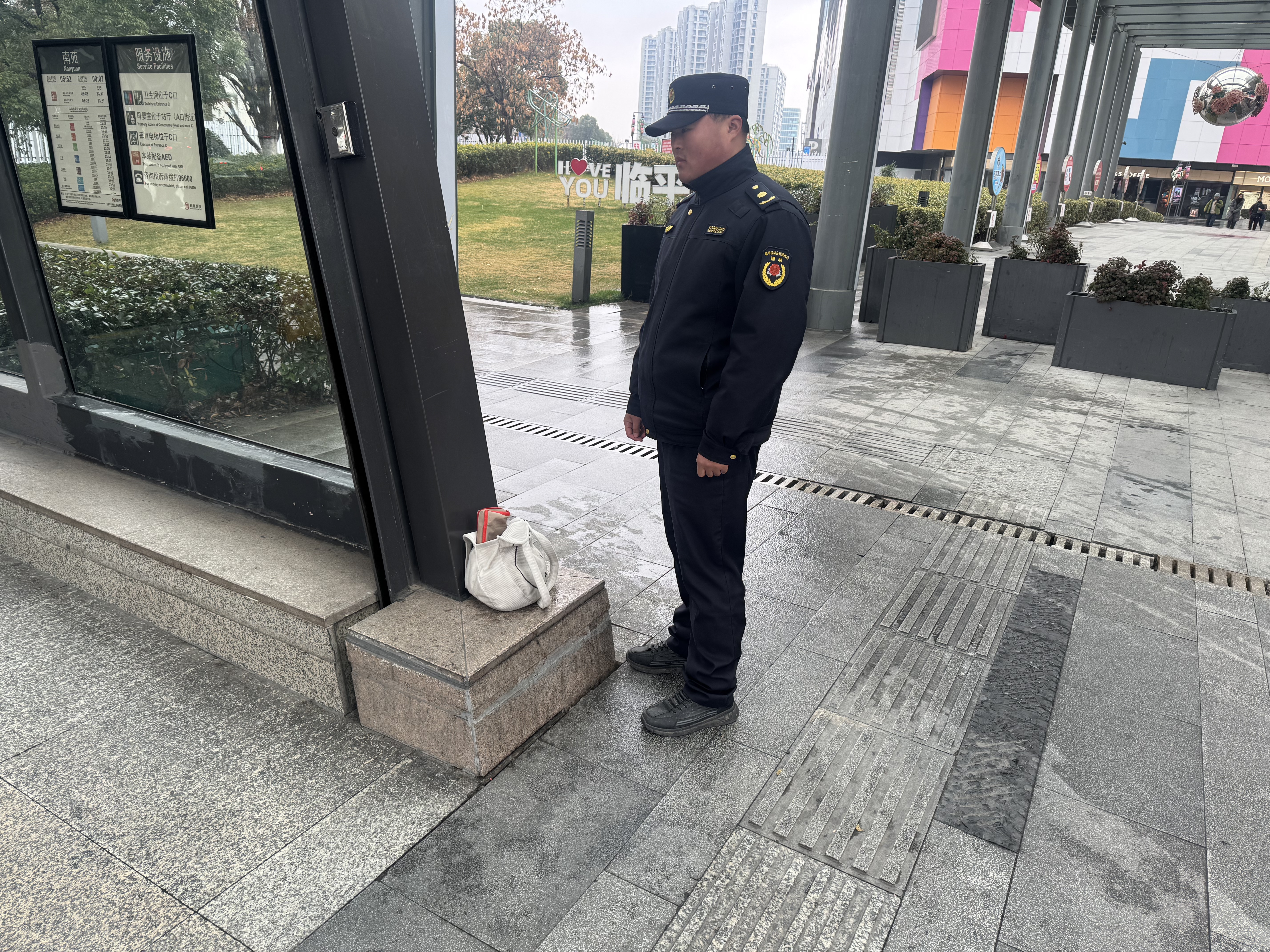 1月31日9:55,浙江民泰公司驻杭州市临平区新城市容项目员工郝创在南苑地铁站d口巡查时,捡到一个手提包,随即报告了项目负责人,并按指示在原地边巡查边等待失主。