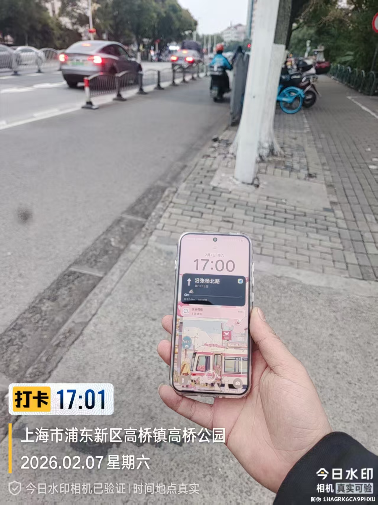 2月4日18:21,宗保公司驻浦东新区高桥市容项目员工丁健康和稽浩原在花山路欧高公路路口巡查时,捡到一部华为手机。两人随即报告了项目队长,并按指示在原地等待失主。
