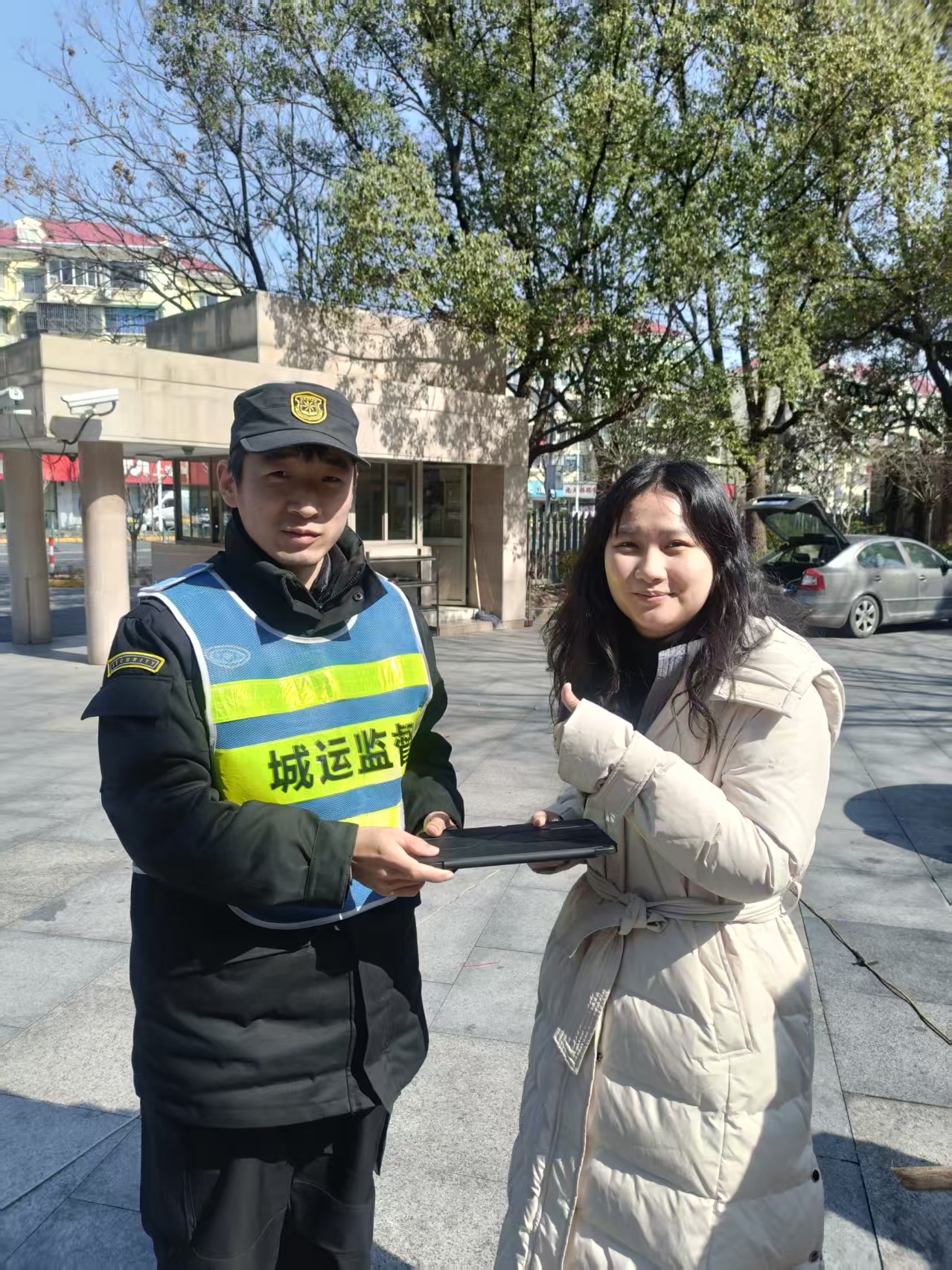 约40分钟后,一位身穿白色羽绒服的女子急匆匆赶到现场,急切地向刘帅旗询问是否捡到一台苹果iPad。经了解,该女子因赶着上班,匆忙中将平板电脑遗落在共享单车车筐内。