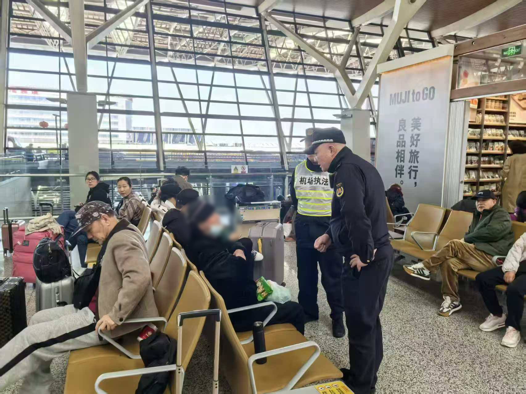3月9日9:30,宗保公司驻浦东新区机场监察项目员工刘占杰在机场出发层巡查时,发现一位神情慌张、四处张望的老人。老人身边既无行李,也无家人陪同,独自一人坐在熙攘的人群中,显得格外引人注目。