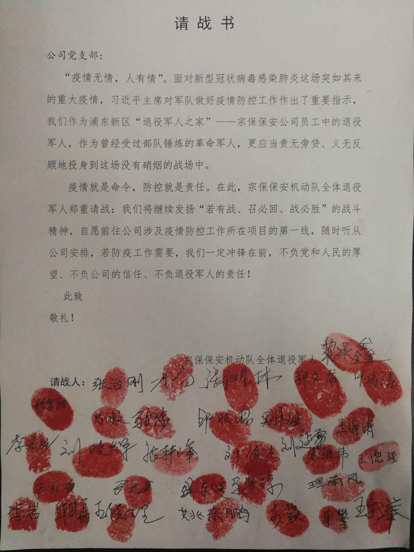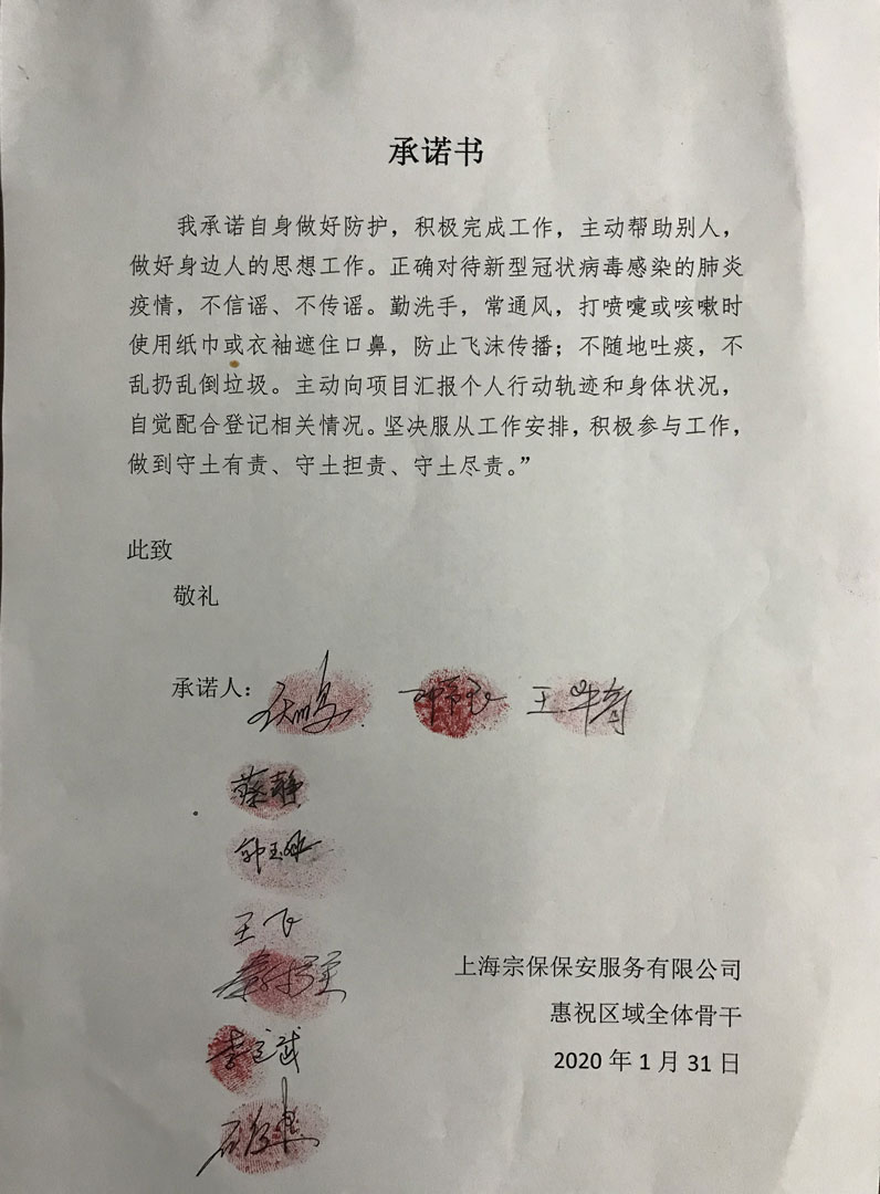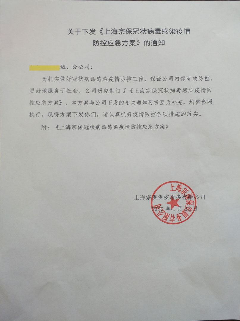 疫情就是命令,防控就是责任。上海宗保保安服务有限公司通过强化工作责任、开展疫情教育、制定有力措施,坚决把疫情防控工作落到实处,力争最终实现公司内部安全稳定的总目标。