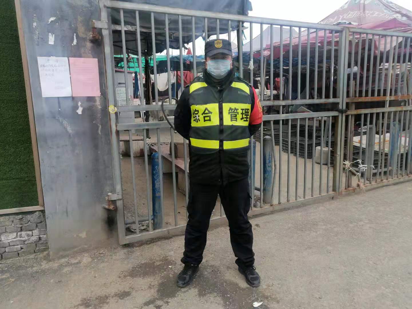 在抗击疫情中,安俊涛除了每天完成为队员送饭、接送上下班工作外,还配合南庄兜农副产品市场工作人员排查检测进出人员体温。