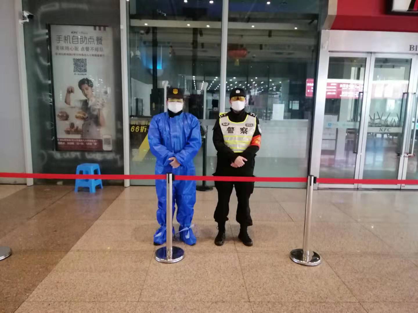 疫情防控中,黄杰在虹桥高铁站配合民警维持出站旅客秩序,保障A类重点人员。