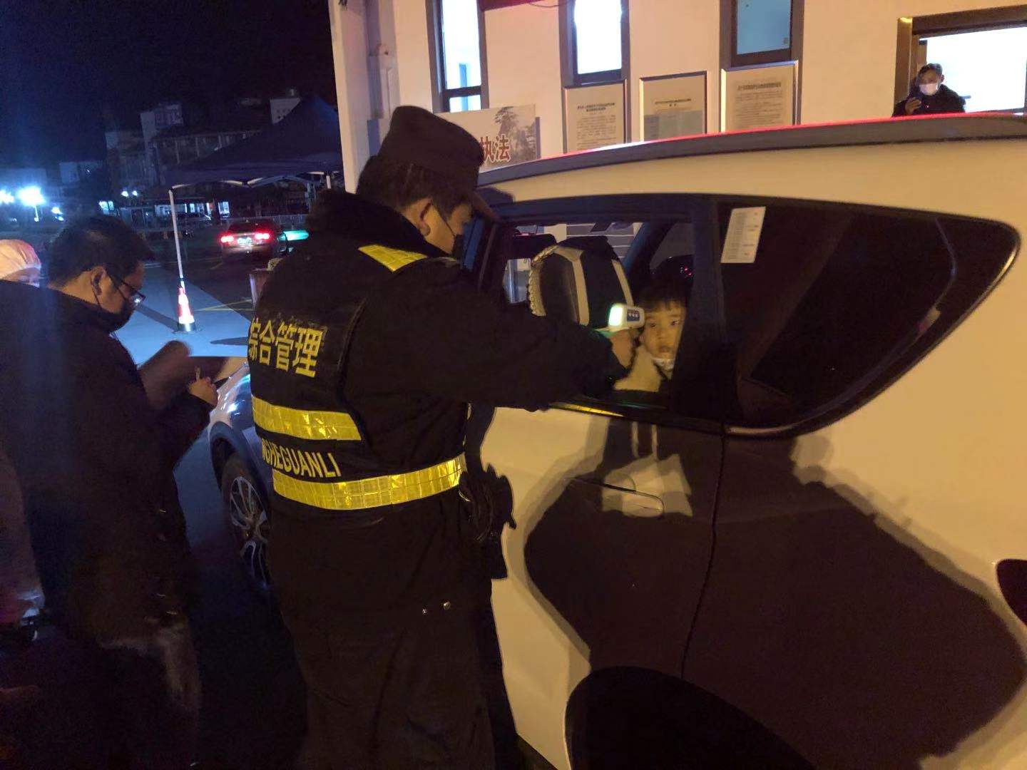 疫情防控中,郭凯配合镇政府检查过往车辆,检测司乘人员体温,做好数据登记。每天抗疫在一线,长达12个小时。