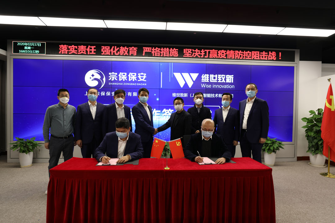 2月17日下午,上海宗保保安服务有限公司与维世致新(上海)智能技术有限公司合作签约仪式在宗保公司训练基地举行。宗保保安公司董事长冯中保、维世致新公司总经理姚建伟等参加签约仪式。