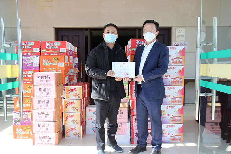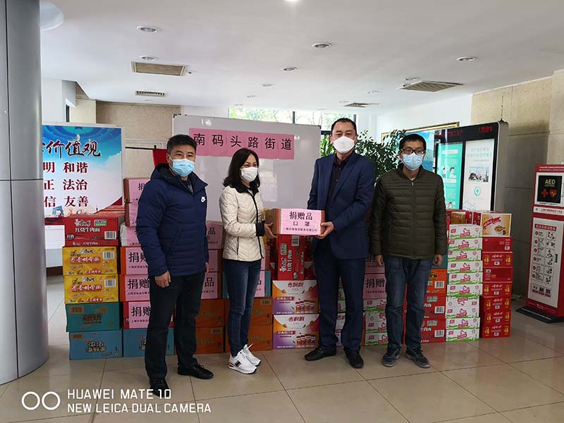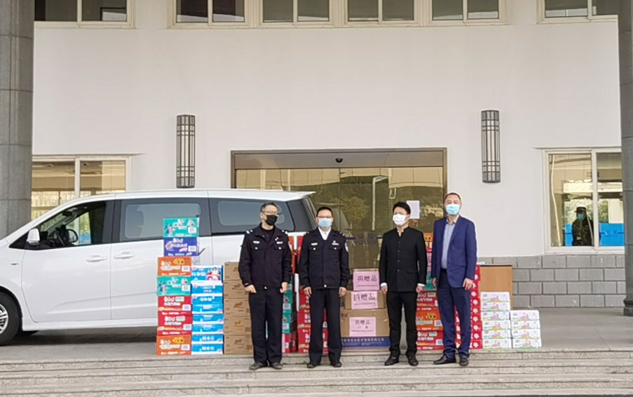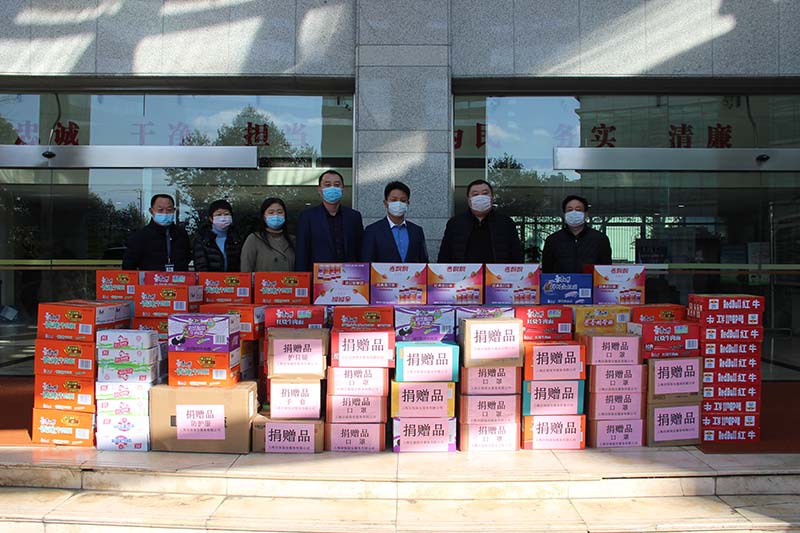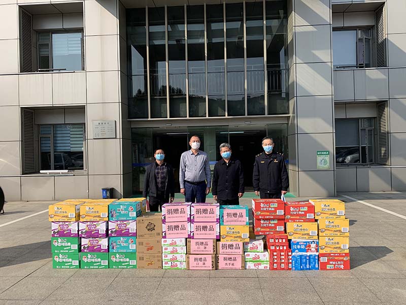 全公司累计捐赠口罩195500只,防护服1225套,护目镜 1335副,手套12400副,洗手液 75箱,消毒液60箱,消毒湿巾15箱,方便面2320箱,火腿肠650箱,牛奶300箱,饼干280箱,水果100箱,红牛180箱,奶茶100箱,八宝粥160箱,总价值达1552975元,其中公司员工捐款227163元,其余部分1325812元全部由公司捐出。