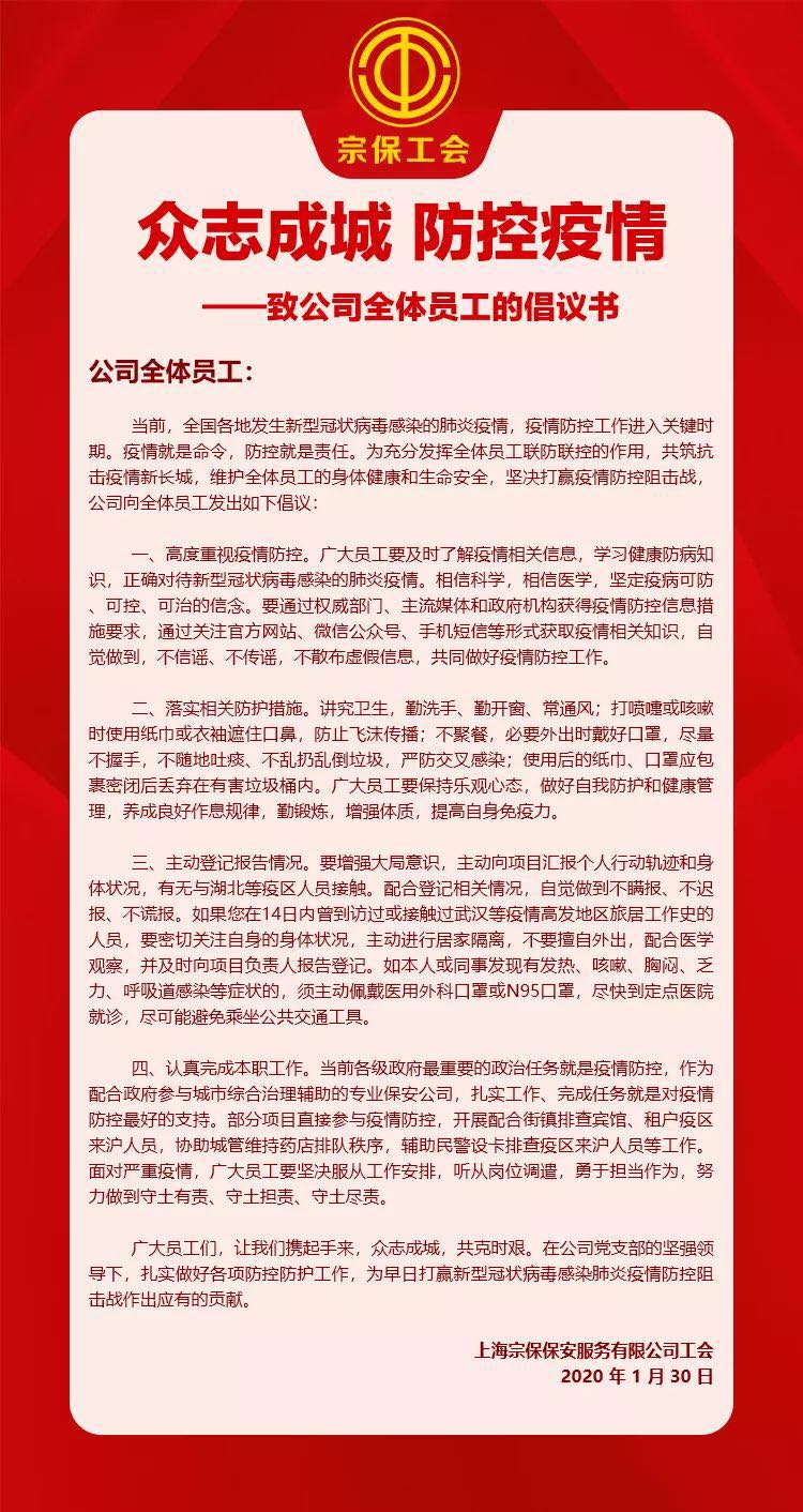 新冠肺炎疫情发生以来,宗保公司始终把员工安全放在首要位置,用务实的举措,为员工送上真情实意的关怀。