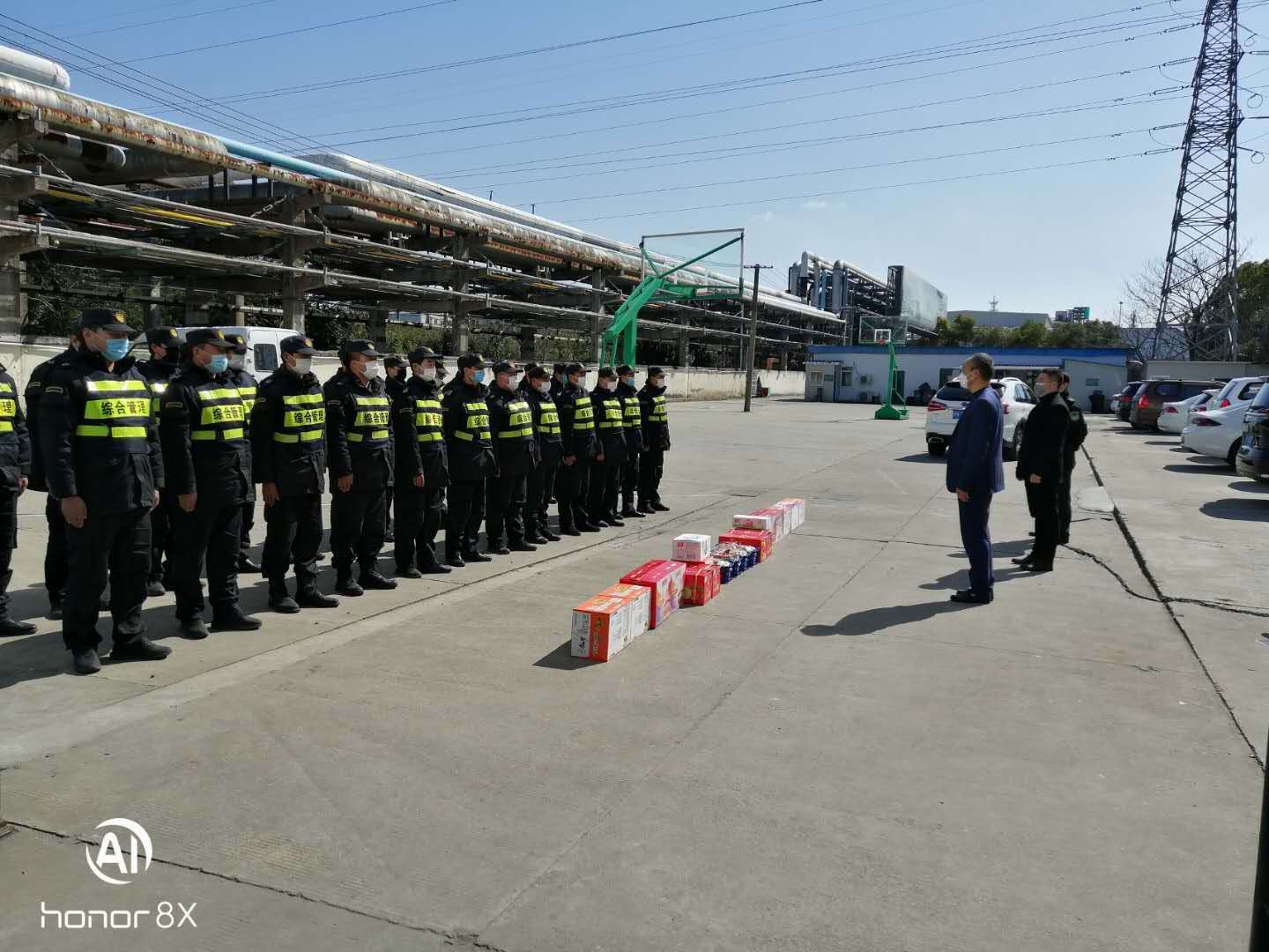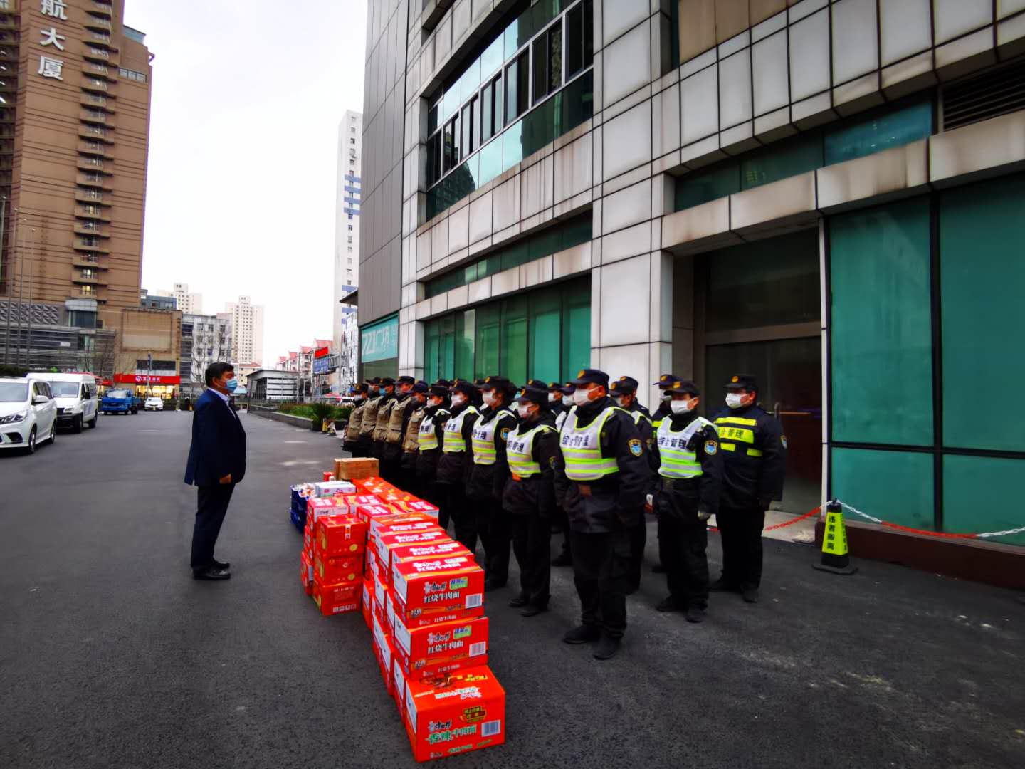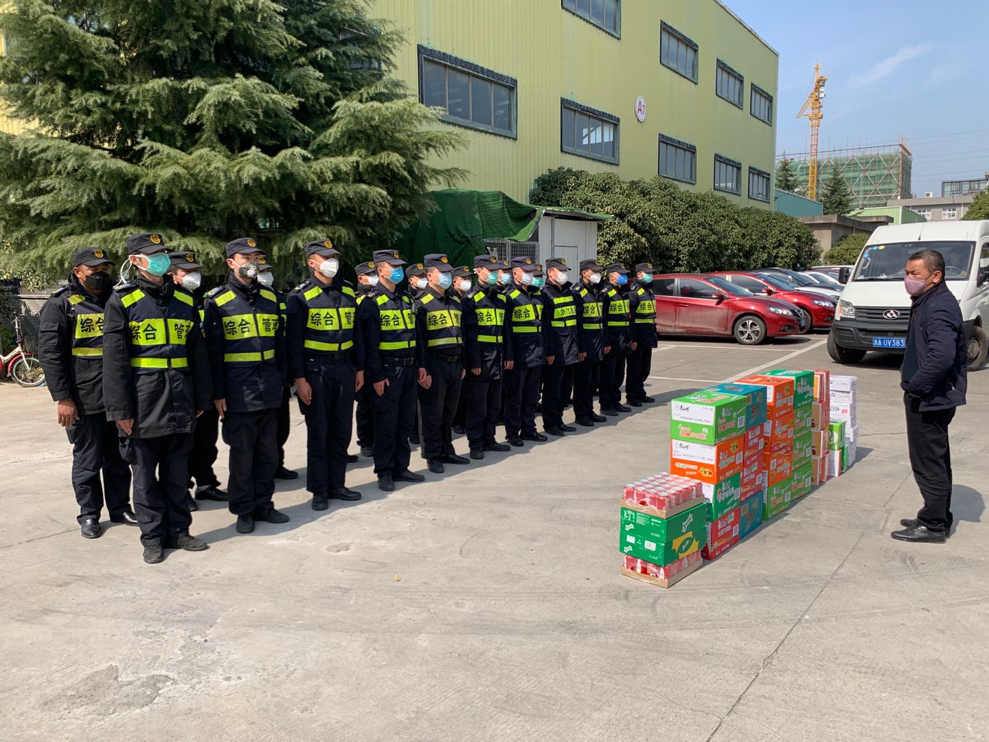 开展关爱慰问,为员工们送情送暖。疫情期间,公司领导明确责任分工,分区域、分项目包干,到一线工作岗位,看望慰问在岗员工,叮嘱做好自我防护,鼓励队员们再接再厉,再立新功。截至25日,公司已累计发放方便面 1650箱,火腿肠 880箱,牛奶460箱,饼干300箱,饮料600箱,水果300箱。