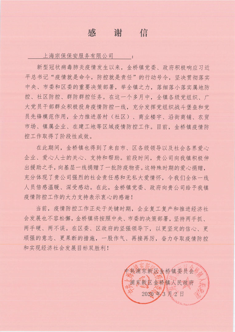 王志荣书记对公司的工作给予了充分肯定,宗保公司作为一家专业配合政府参与城市辅助社会治理的保安公司,能够坚决贯彻落实区委、区政府疫情防控部署要求,严格落实疫情防控各项规定措施。并能在做好员工自身安全防护的前提下,紧密结合疫情实际,积极配合政府全力投入到疫情防控阻击战之中。尤其是在公司做好疫情防控的同时,主动承担更多防控责任,捐款购买疫情防护物资,赠送到疫情防控一线单位,体现了公司的社会责任感,体现了公司抗击疫情的担当和作为。
