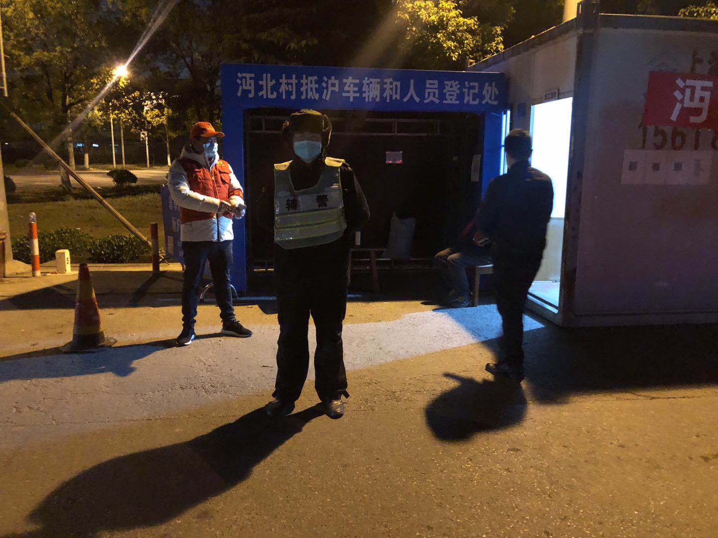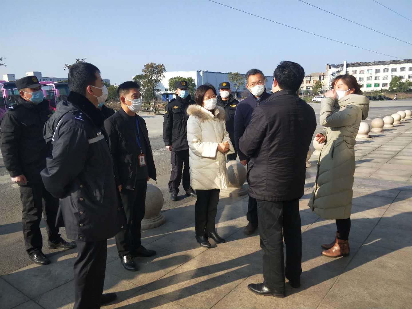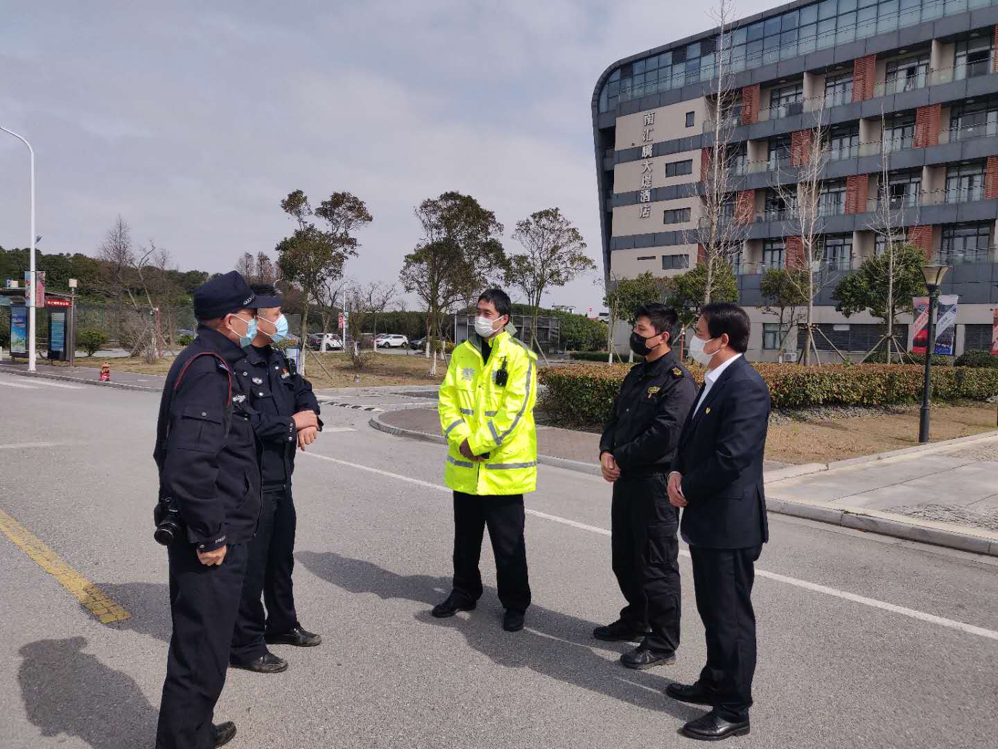 3月5日,惠南镇党委书记潘秀红、政法书记沈列勇、世博公安处大队长张华到工作一线检查指导,看望勉励参与疫情防控的宗保员工。