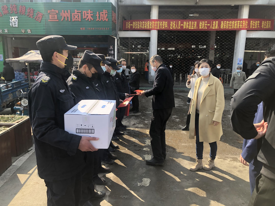 3月5日,星桥街道党工委组织委员陈墨飞、团委书记周静俭一行到星桥菜场看望慰问浙江民泰一线执勤队员。