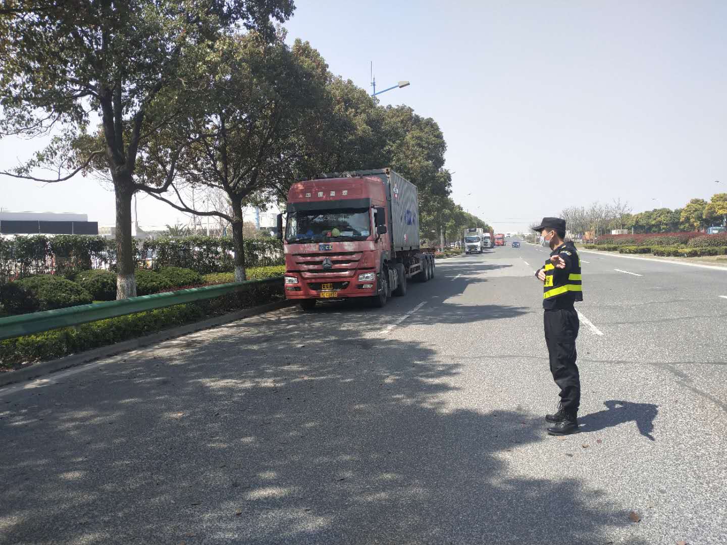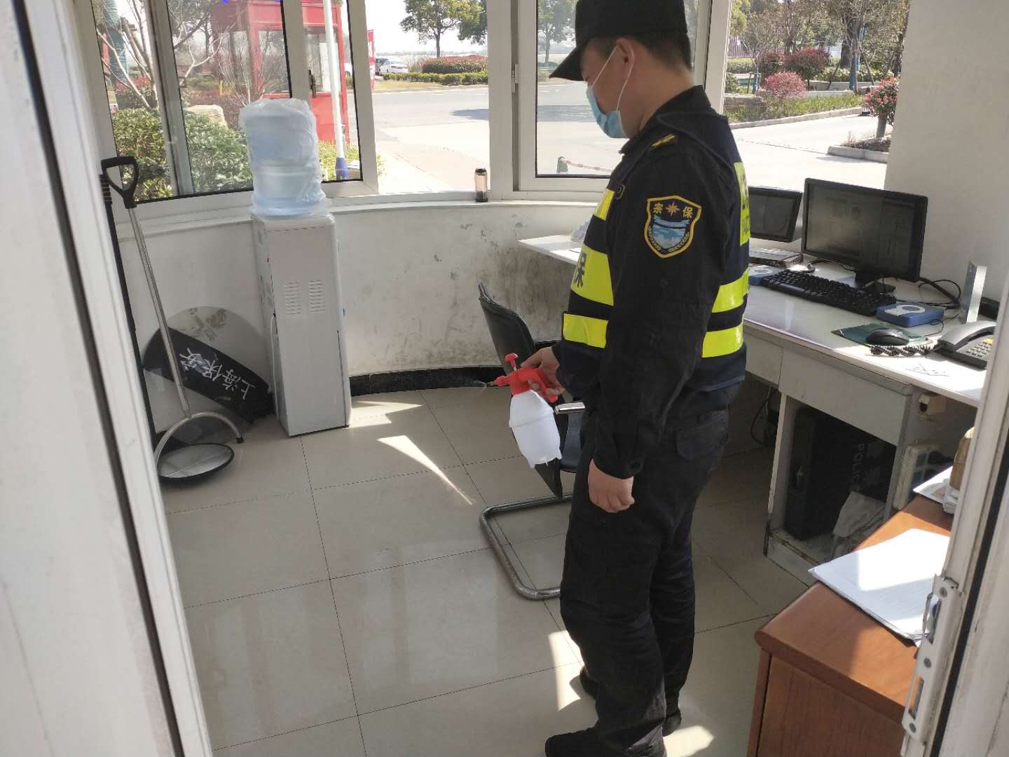 港城集团危险品仓库项目因其工作的特殊性,春节不放假。宗保公司驻该项目全体队员不惧危险、主动作为、连续奋战,配合安监部严格落实疫情防控措施规定,积极做好查验进入危库人员健康随申码,测量进出人员体温,检查岗亭周边安全,劝离无关人员和车辆,对进出人员及库区全面消毒,对进出车辆进行安全排查等工作,确保了疫情期间进出危库人员和车辆安全,实现了疫情防控和正常工作开展两不误。