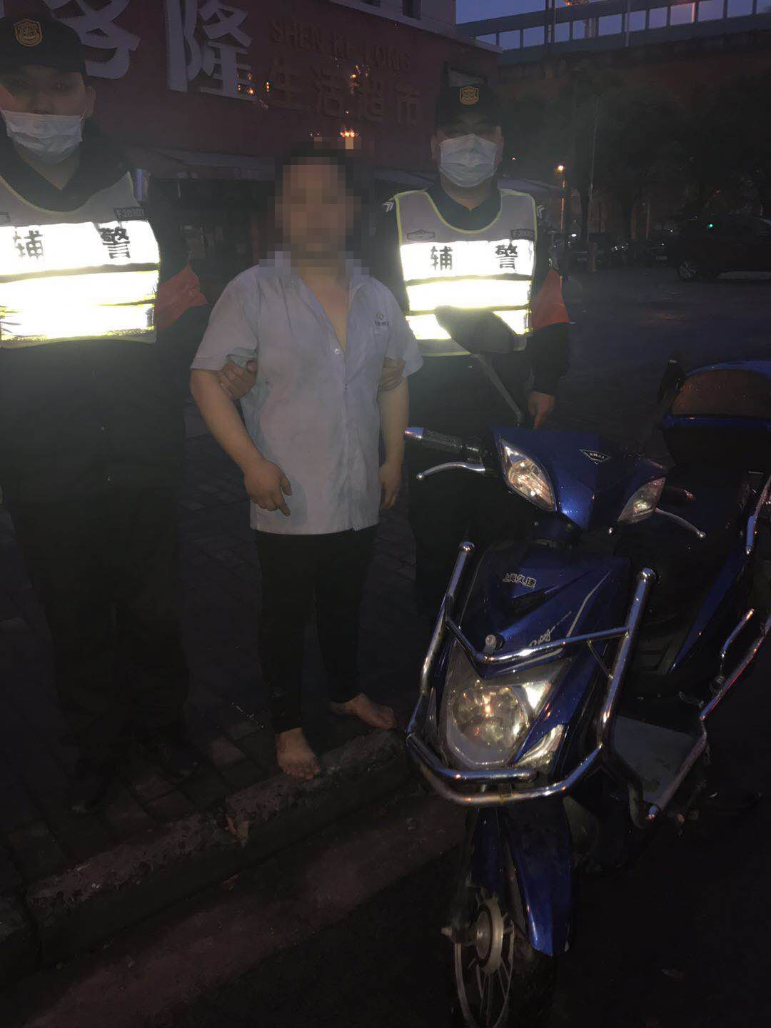 3月26日凌晨5点10分,宗保保安公司驻孙桥派出所辅警项目队员孙魁、邵辉巡逻至孙桥路军民路时,发现一男子推着一辆电瓶车,神色慌张、形迹可疑。两名队员随即上前询问,该男子支支吾吾,说话前言不搭后语,所述不能自圆其说。两名队员凭着长期的工作经验、职业的敏感性,断定此人有一定嫌疑,于是就先设法稳住该男子,并向联防队赵径达队长报告。