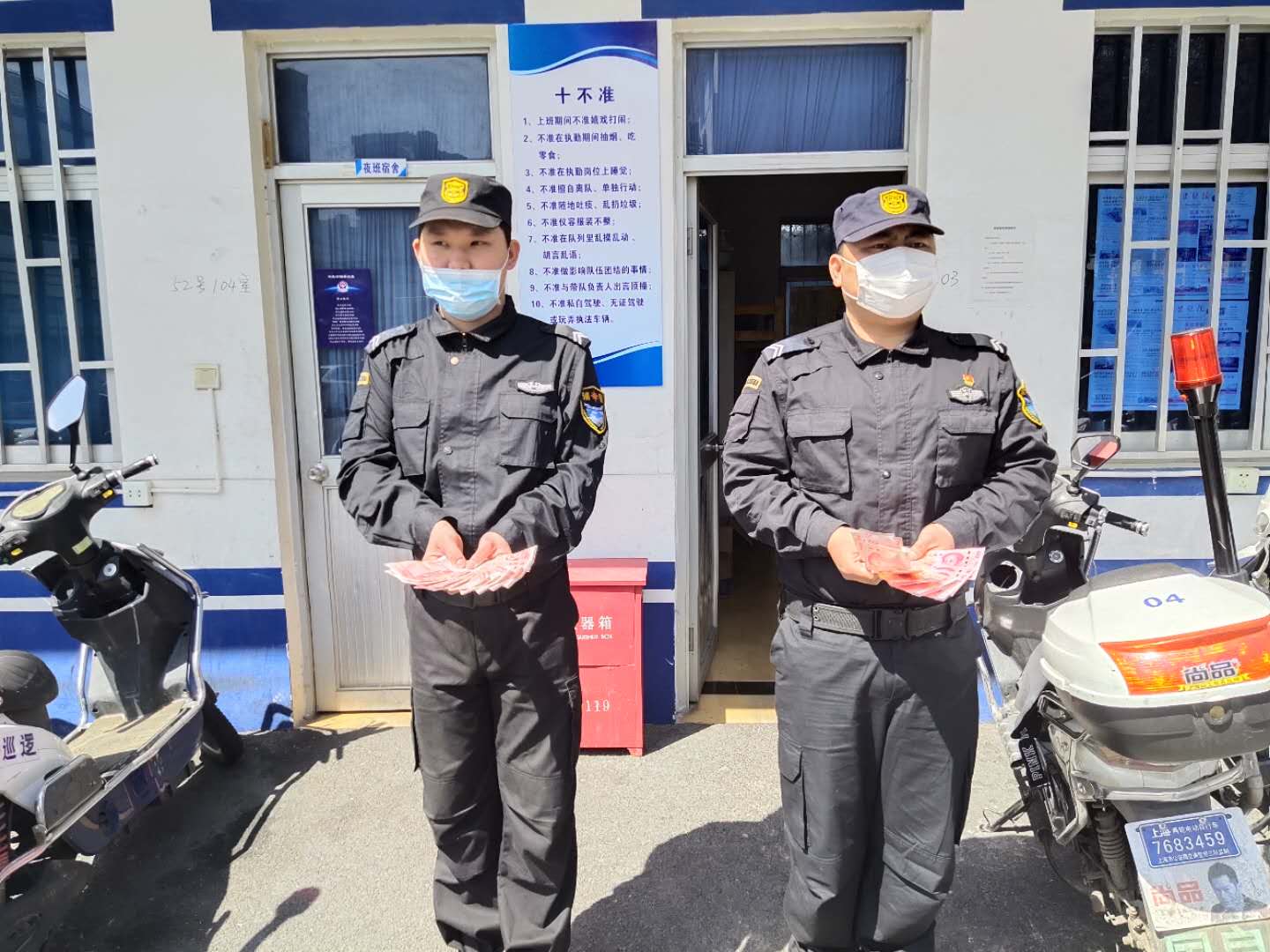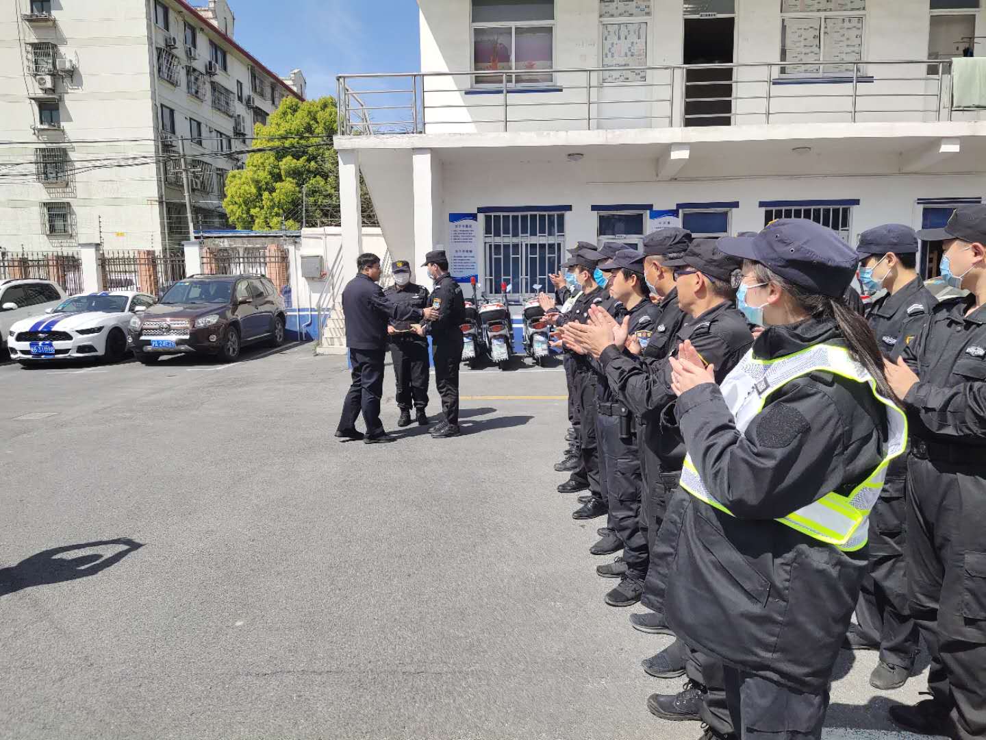 4月5日上午,张江派出所叶祖来警官和联防队卫安大队长,代表所领导对宗保公司驻孙桥辅警的全体人员,在疫情防控中所做的工作、所取得的成绩给予充分肯定和感谢。特别表扬了在3月26日发现电瓶车盗窃案并协助抓获犯罪嫌疑人的孙魁、绍辉两名队员,分别奖励现金1000元,并号召其他队员向他们学习。