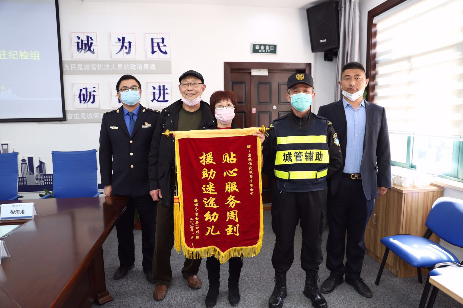 事情要追溯到1月19日,周浦市容项目驾驶员王安斌在巡逻时遇到一名与家人走散的小女孩,并辗转帮助小女孩找到了家人。送锦旗的两位老人是小女孩的外公外婆,当天在周浦城管中队,白泽民队长、金耀副队长和公司周浦区域经理王占伟一起从老人手中接过了这面承载着荣誉的锦旗。