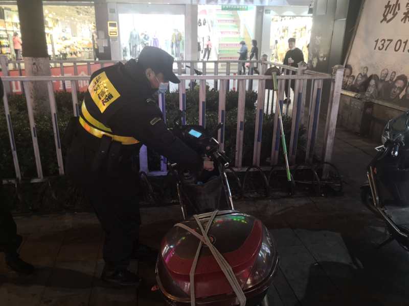 4月14日18:50,宗保公司驻惠南辅警项目队员常亮、季云超巡逻至惠南镇步行街354号时,发现路边有辆电动车插着钥匙,仪表显示器亮着。