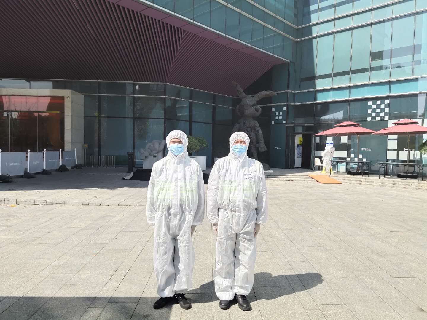 宗保公司驻金山卫镇市容项目4月5日接到甲方通知,派出队员配合镇政府对XX酒店境外回国人员进行集中隔离看护。