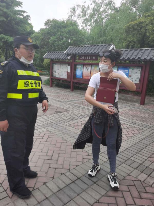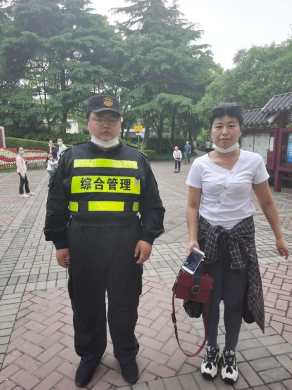 小陈和小郑第一时间将情况上报带班组长,并按照要求在原地等待失主。大约20分钟后,一名女士十分焦急地走过来,好像在找东西。陈阿丽和郑世豪见状上前询问,经核实身份确定是失主本人,便把挎包归还。