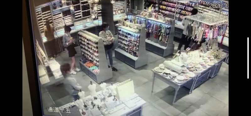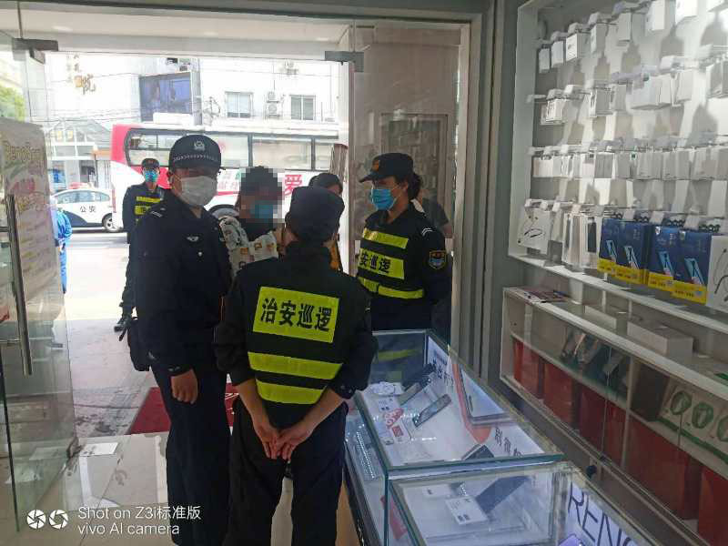 当天13:40,郭秀轩和贾大千巡逻至三八路附近时,一名三福商场工作人员拿着手机急匆匆地跑过来反映情况:一个年轻女子在商场行窃,被监控拍到全过程。该工作人员手机中视频显示:行窃女子身穿黑白斑点短袖 、蓝色牛仔裤,脚穿黑色运动鞋。