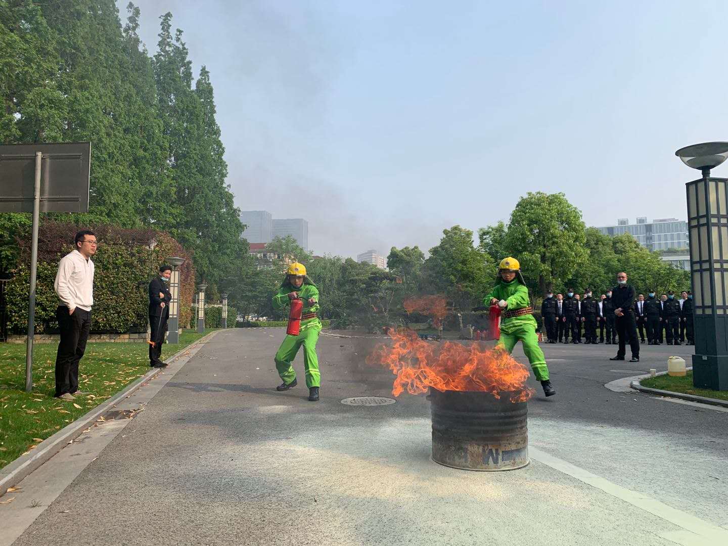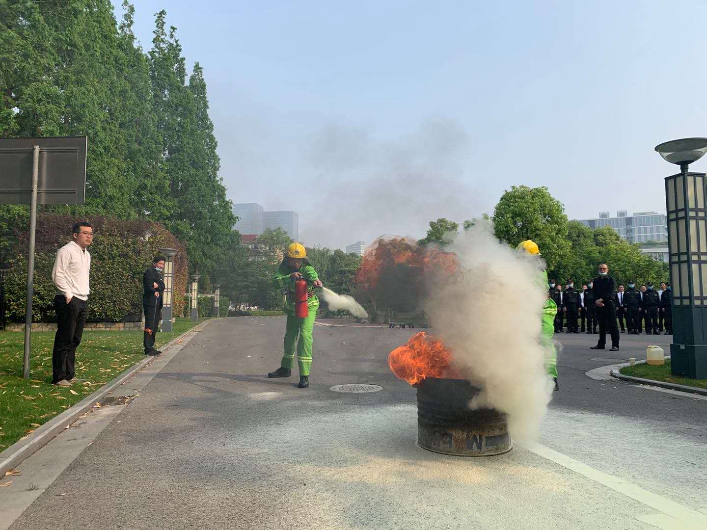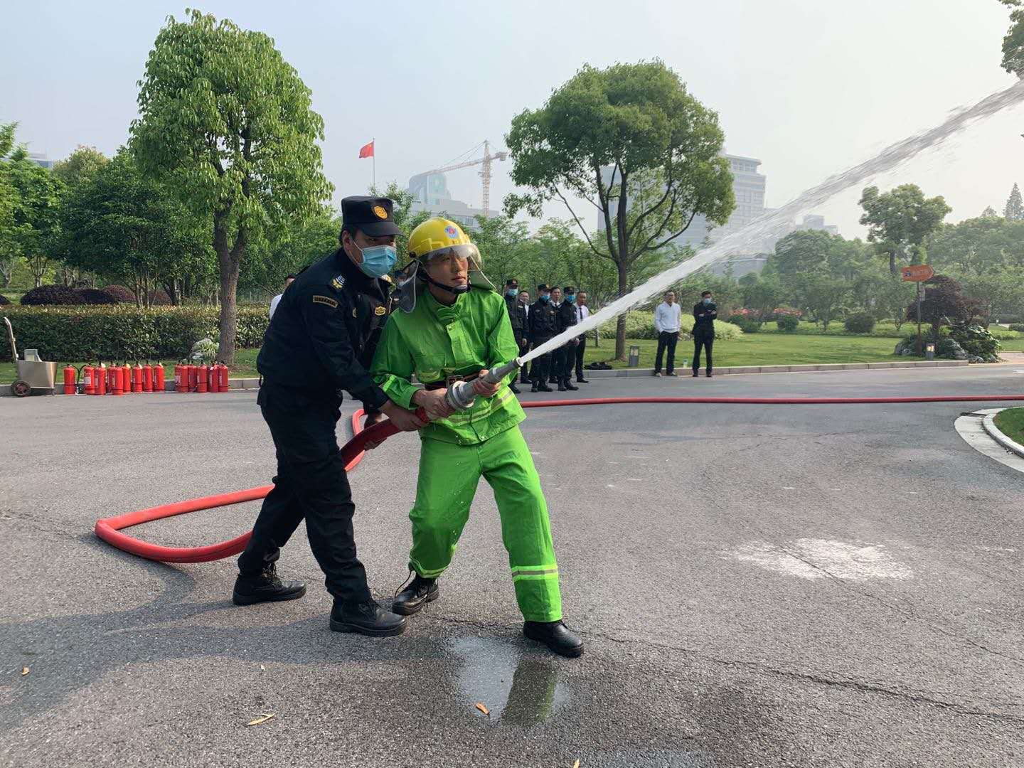 5月4日7:30,宗保公司驻市委党校项目在校方的部署指导下开展消防安全演练。