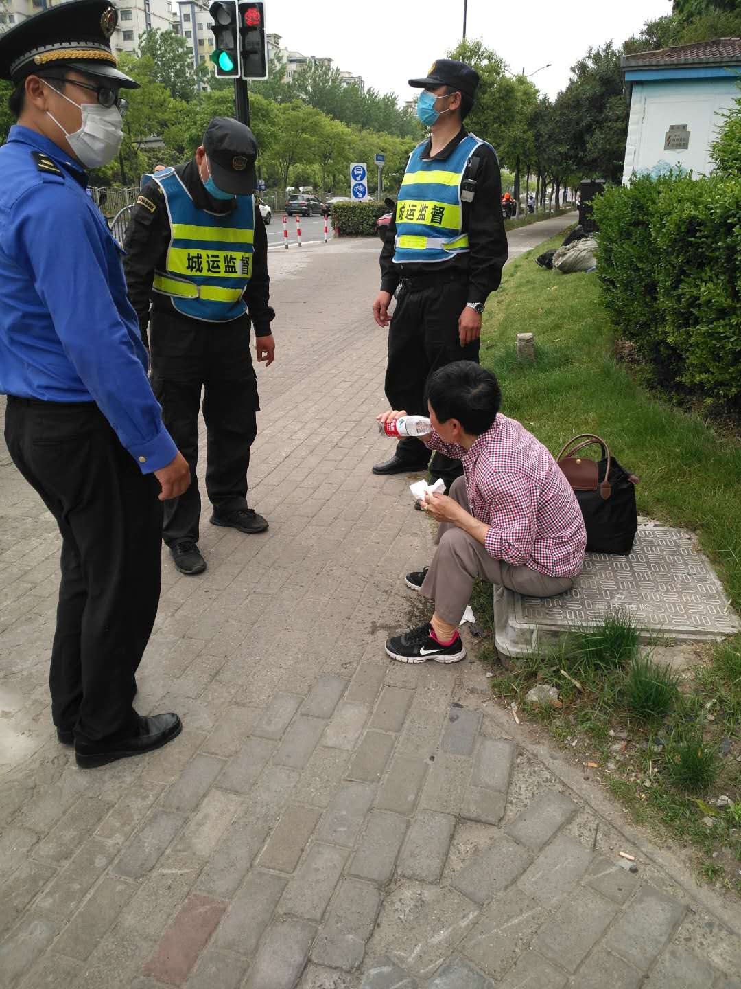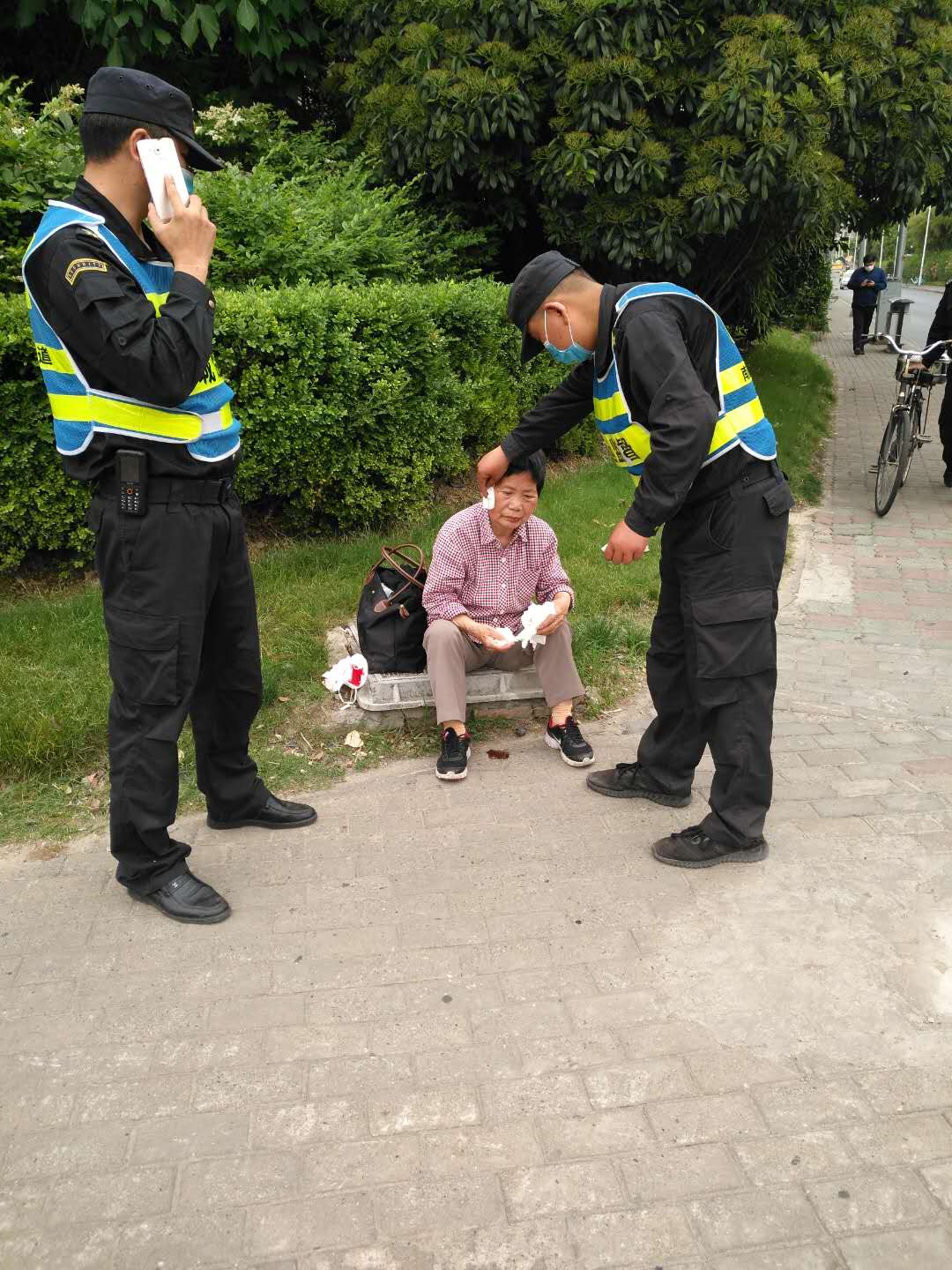 5月14日15:30左右,宗保公司驻南码头市容项目队员甘文兵、杨召群巡查至杨高南路东三里桥路交叉口时,发现一位老人坐在路边,脸上有斑斑血迹,老人只是机械性地擦着脸上的血,而周围来来往往的人却熟视无睹,事不关己,无人施以援手给予帮助。