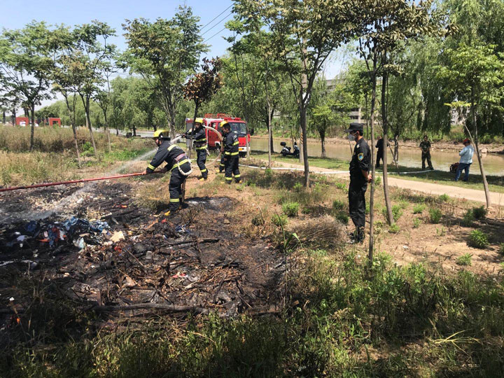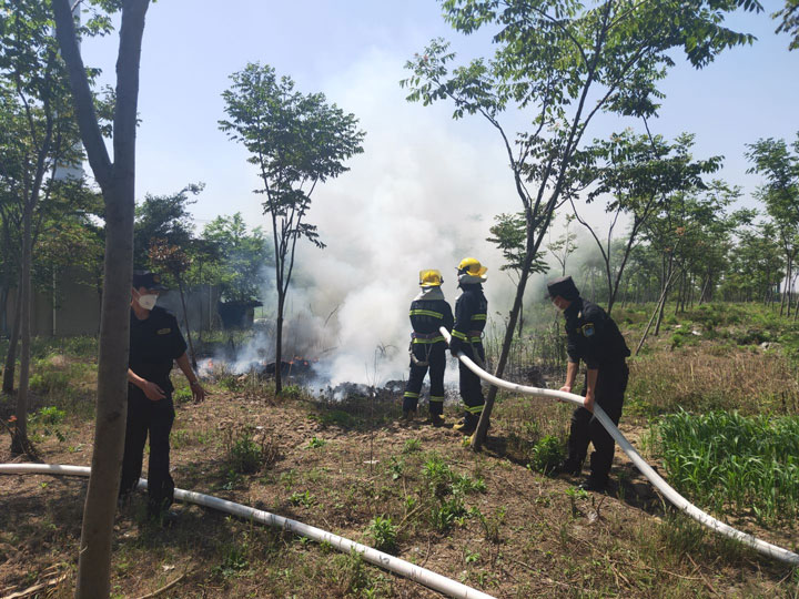 消防员赶到现场后,保安队员全力协助进行灭火。经过半个多小时的扑救,火势被彻底扑灭,避免了一场火灾事故的发生。