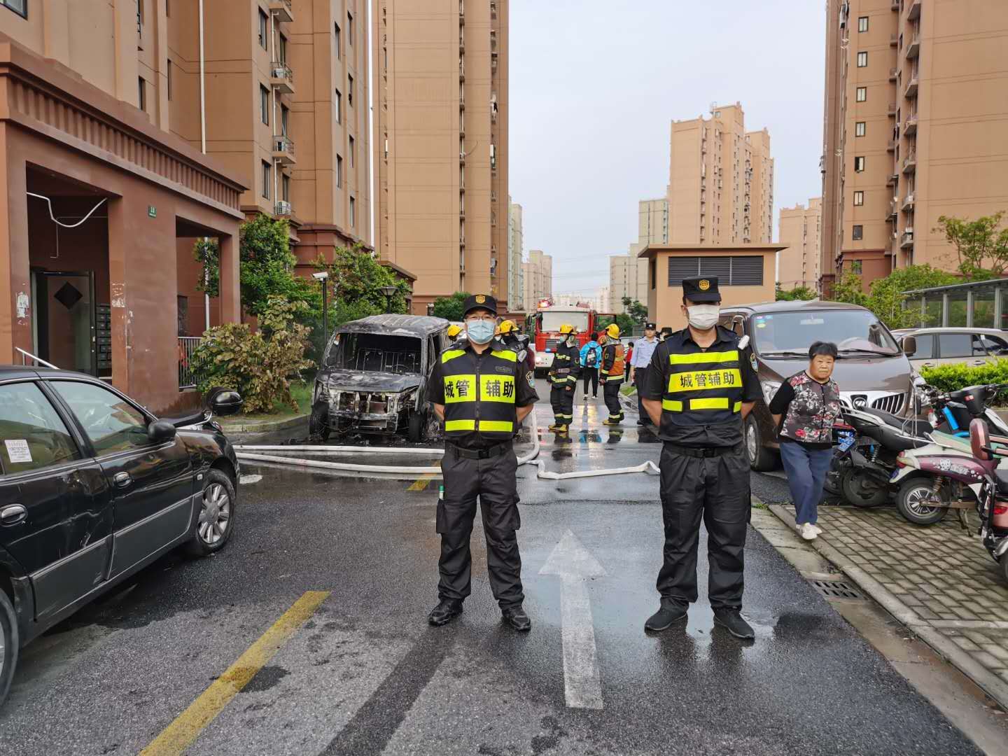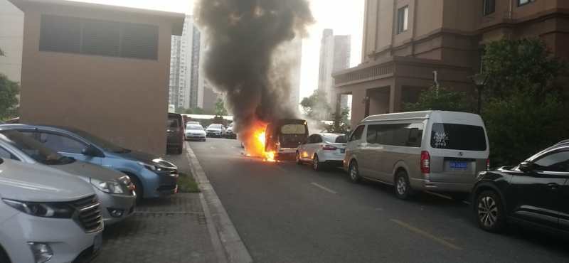 6月2日4:40,宗保公司驻周浦市容项目队员胡德良在周阳路泰丰里小区巡逻时,发现一辆新能源汽车起火,现场浓烟滚滚,火势较大。而且旁边还停有几辆汽车,一旦发生爆燃,后果不堪设想。事不宜迟小胡急忙拨打119报警,并向当班组长报告要求前来支援。