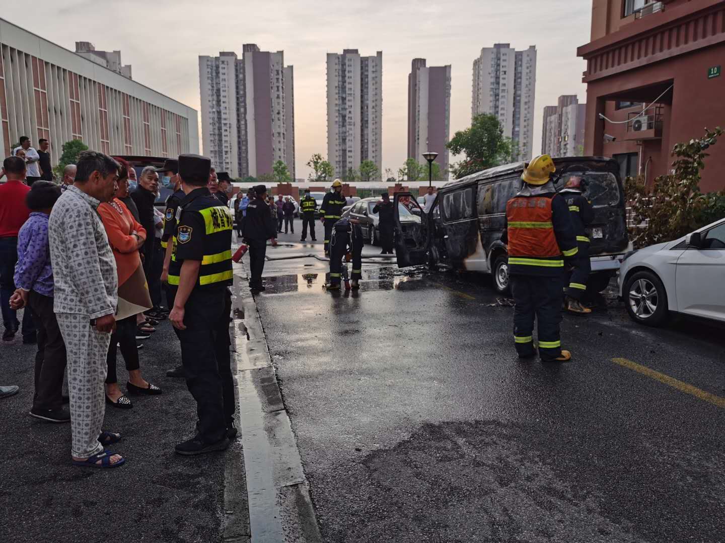 当班组长张祎飞接到电话,立即带领黄兆钦、赵军政、李冠军、邹县委、杨波等队员赶往现场,对围观群众进行疏散,维护现场秩序。