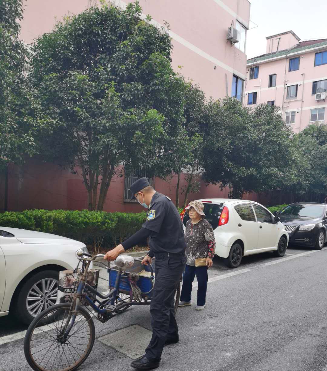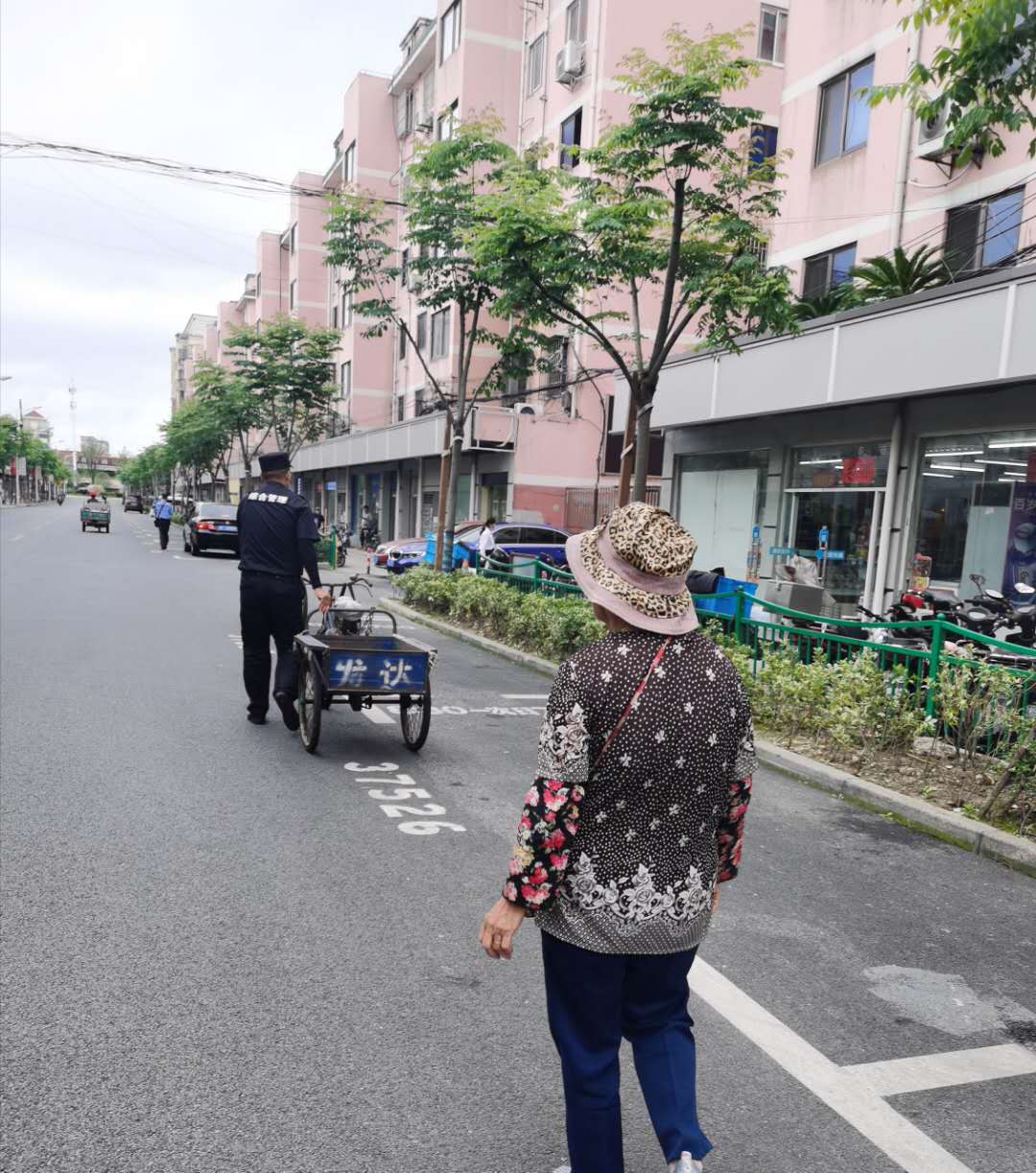 6月9日11:00,宗保公司驻奉浦网格项目队员戚思功、成祥昌巡查至环城东路与八字桥路口,发现一位推三轮车的老人在附近来来回回转了好几圈,看样子像是迷路了。