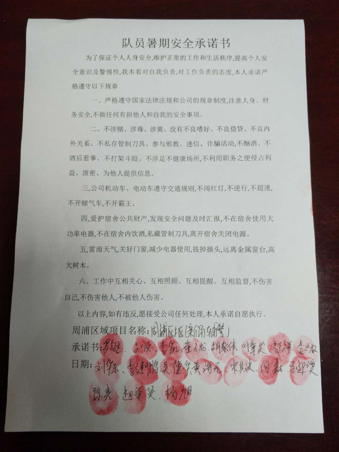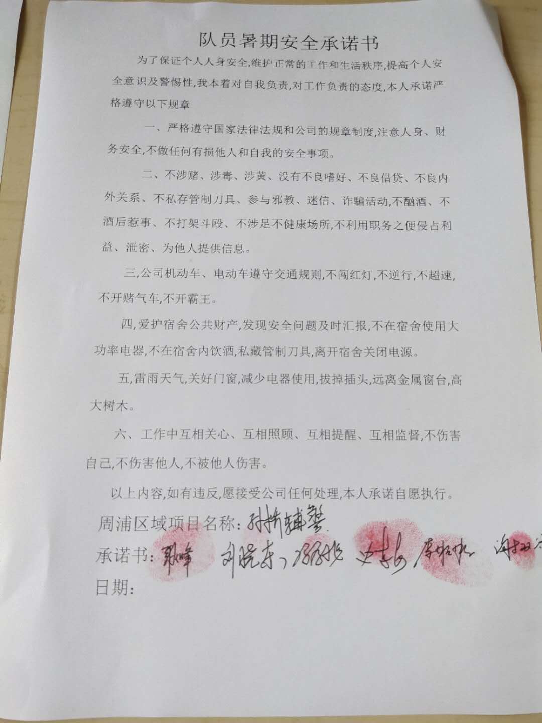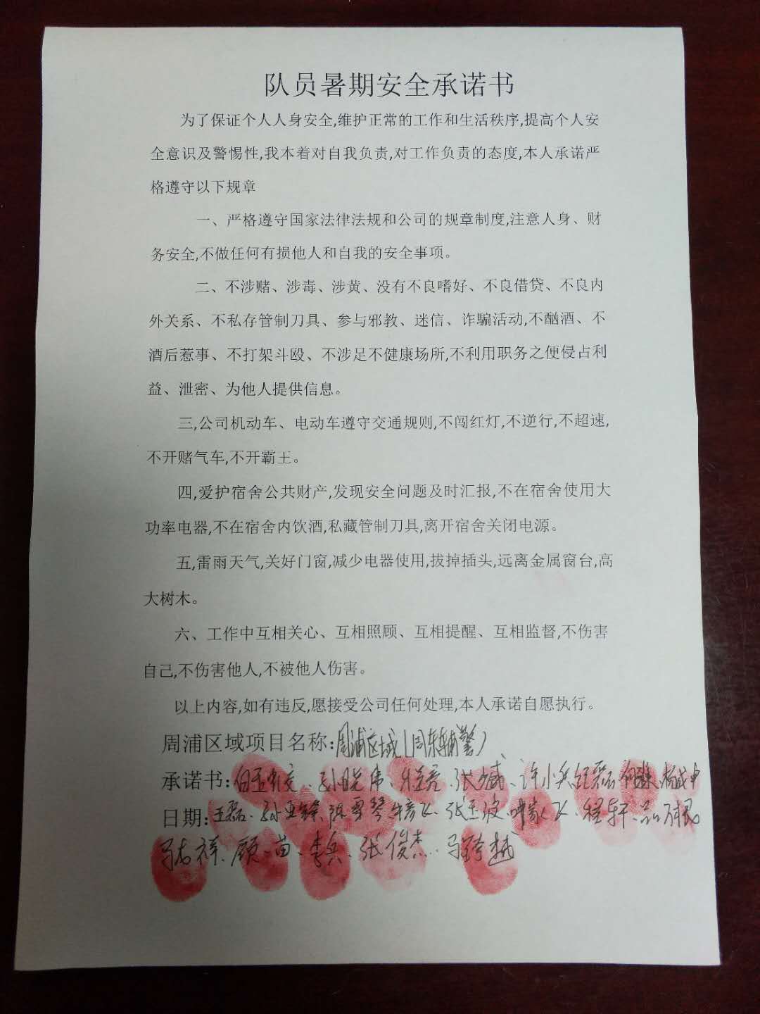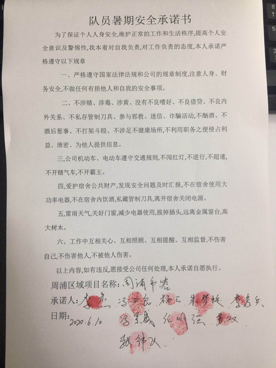 全体员工认真学习领会公司暑期安全工作部署会精神,思想上高度重视,行动上坚定自觉,各项目骨干带头与队员签订暑期安全承诺书,强化责任意识,筑牢安全防线,坚守安全底线,确保平稳度夏。