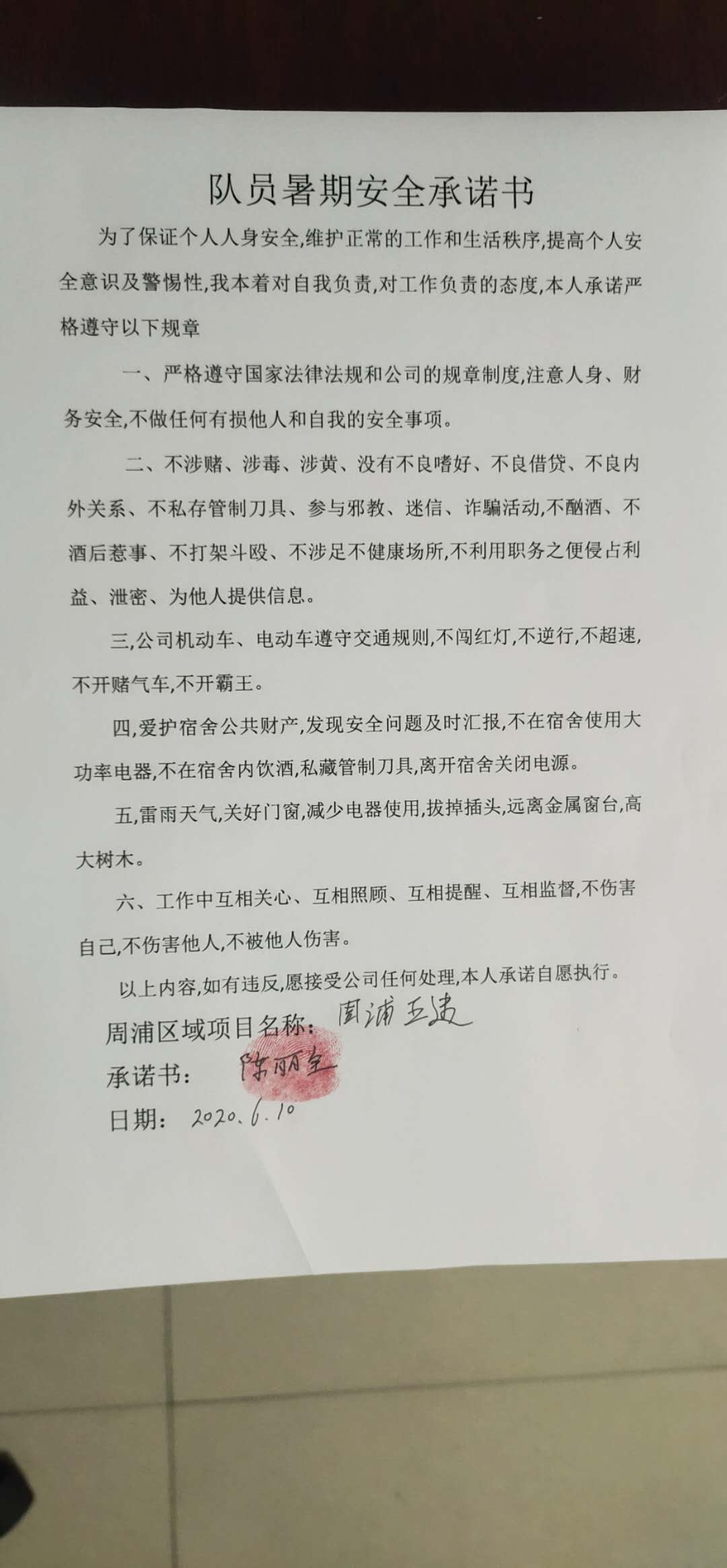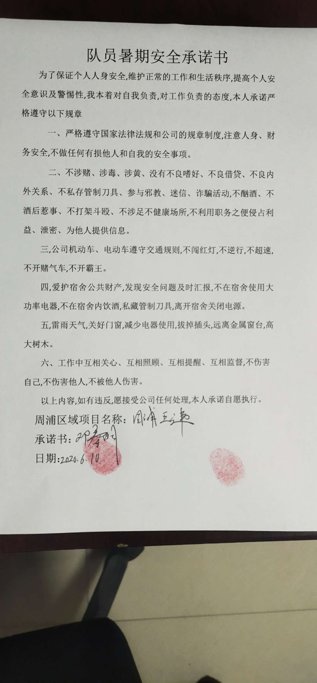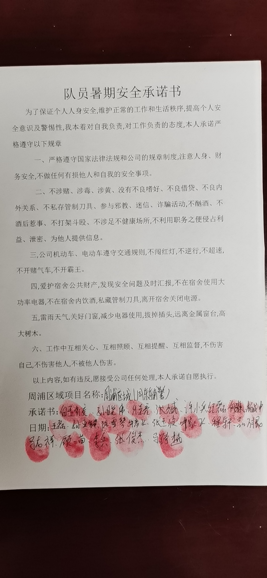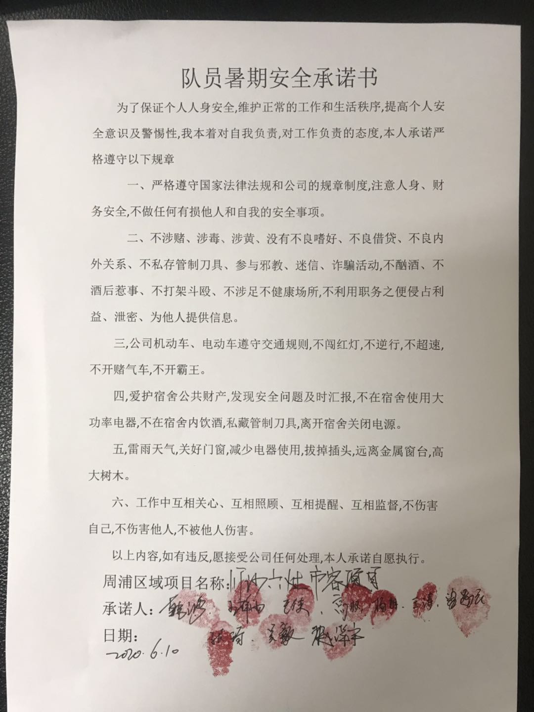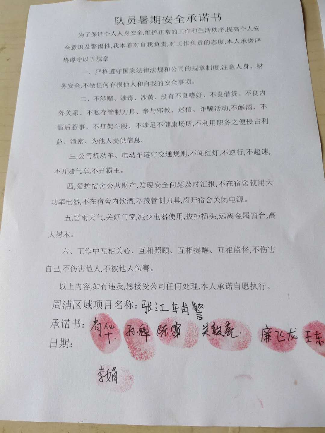 全体员工认真学习领会公司暑期安全工作部署会精神,思想上高度重视,行动上坚定自觉,各项目骨干带头与队员签订暑期安全承诺书,强化责任意识,筑牢安全防线,坚守安全底线,确保平稳度夏。