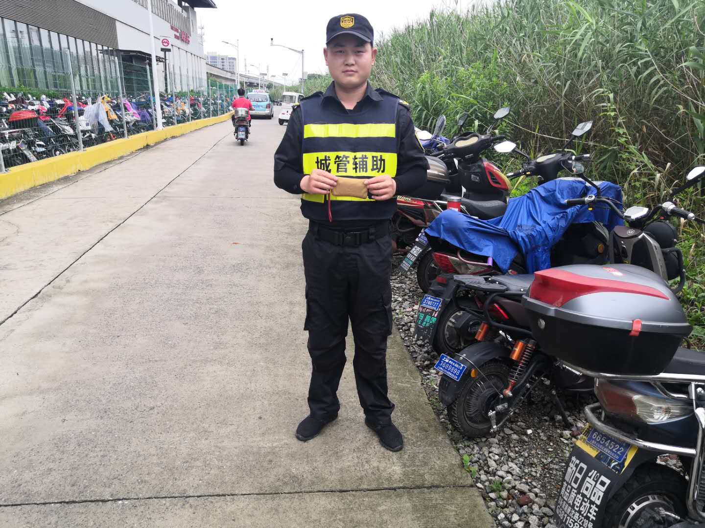 6月16日15:18,宗保公司驻周浦市容项目队员黄俊在周浦东地铁站巡逻途中,捡到一只钱包。经查看,里面除了现金、银行卡、各类证件外,还有一张15万的定期存单。因黄俊的岗位是单人单岗,且是巡逻执勤,所以黄俊将此事上报当班组长,并由组长将钱包交到周东派出所。