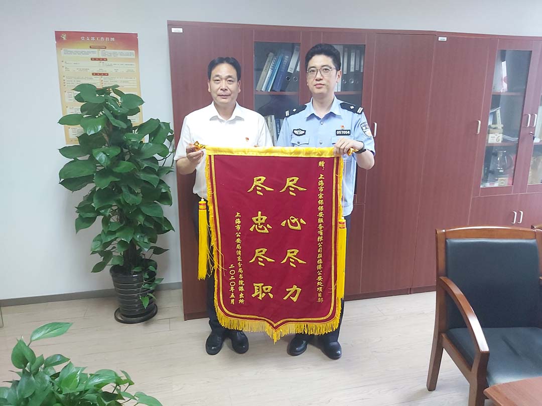6月15日,临港公安处指挥中心主任周明敏亲临宗保公司驻临港公安处辅警项目,赠送一面绣有“尽心尽力,尽忠尽职”八个大字的锦旗,并对临港公安处辅警项目全体员工在疫情防控中的优秀工作表现及突出的应急处置能力,表示肯定和赞扬。