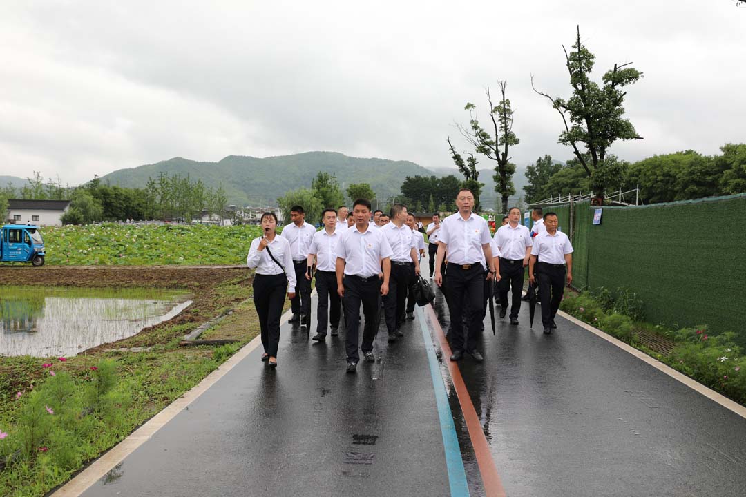 6月21日一大早,大家冒着细雨,来到“绿水青山就是金山银山”理念诞生地——浙江省安吉县天荒坪镇余村参观学习