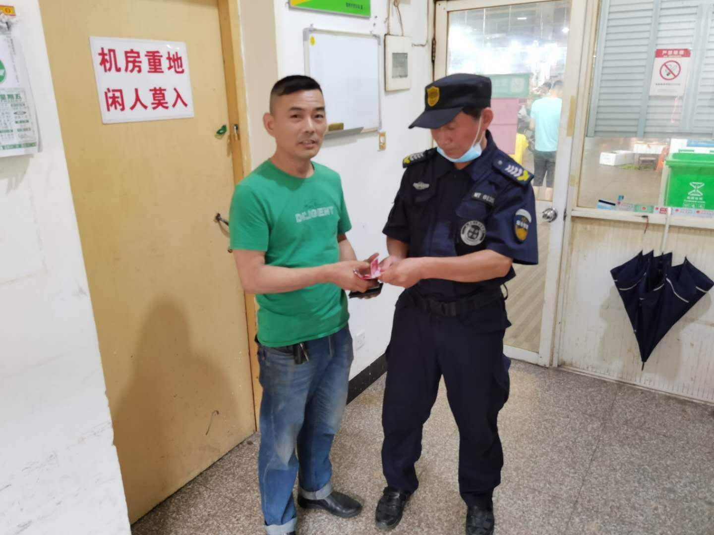 考虑到失主可能就在附近,就通过市场广播寻找失主,可是一直没有人来认领。最后,付串串决定暂时先把钱放在值班室代为保管。于是,出现了本文开头的一幕。