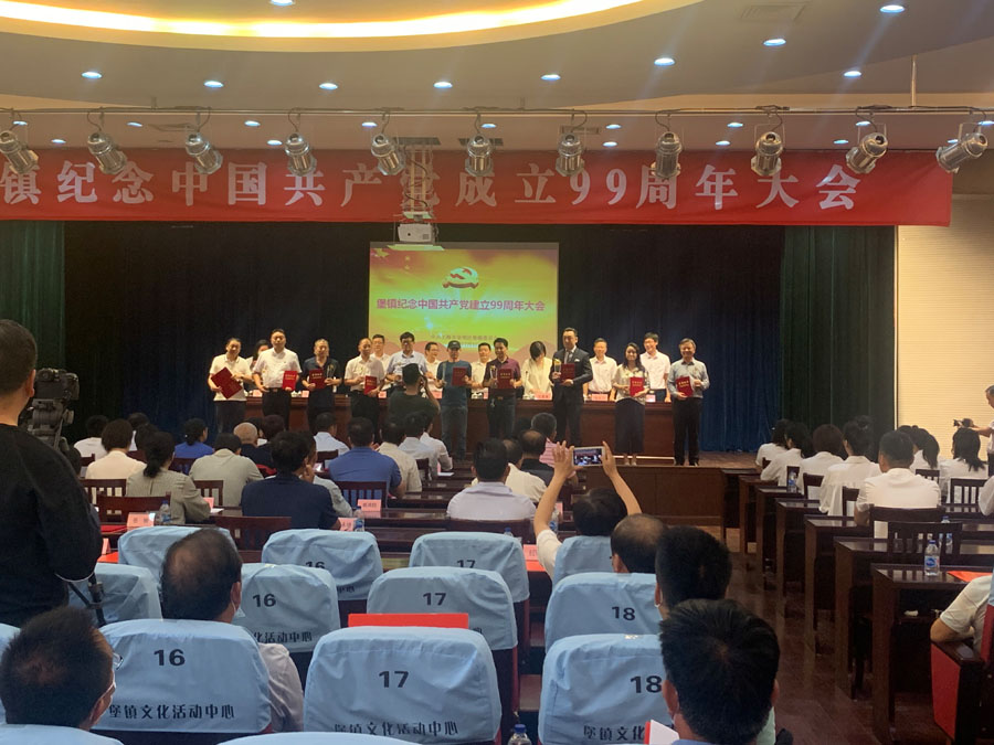 7月1日,崇明区堡镇举行纪念中国共产党成立99周年大会。上海宗保保安服务有限公司当选为堡镇“抗疫爱心企业”,崇明区域经理马应龙上台领奖。