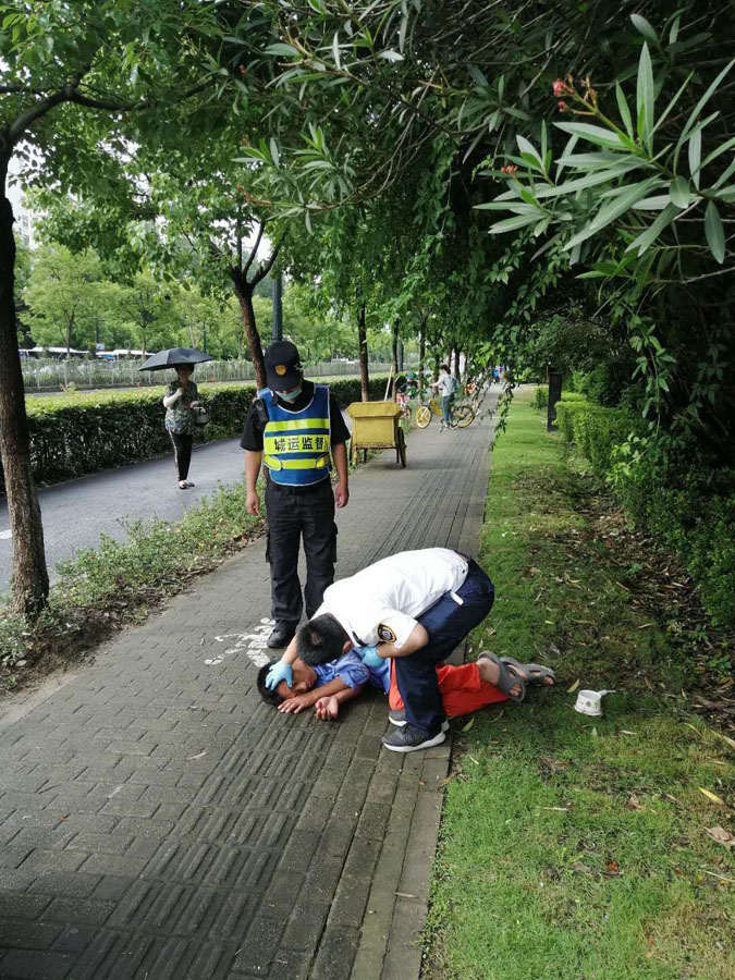 小宋意识到该男子可能是突发疾病,处于无意识状态。于是就立即向城运中心汇报情况,同时拨打了110报警电话和120急救电话。