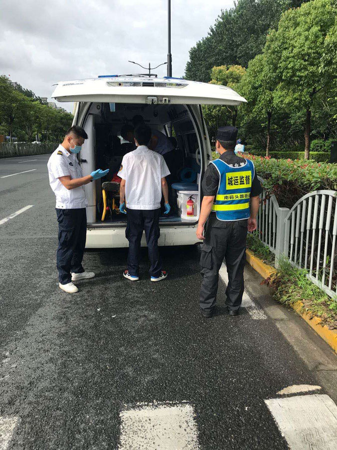 7月3日8:30,宗保公司驻南码头网格项目队员宋文松巡逻至杨高南路西侧东三里桥路时,发现往南约10米处的人行道上躺着一名男子。小宋立即上前查看,该男子年龄大约在45岁左右,跟他对话无任何反应。