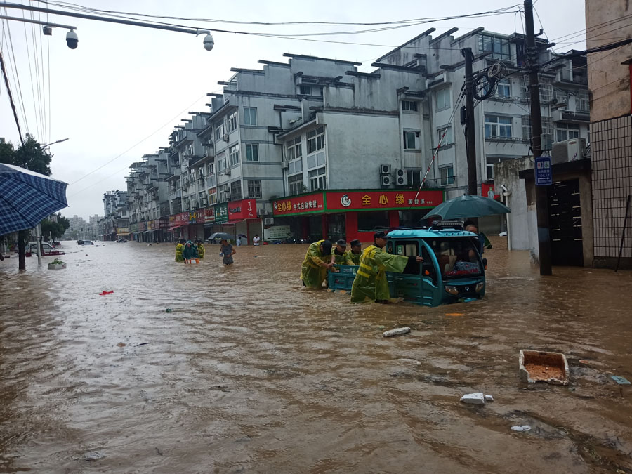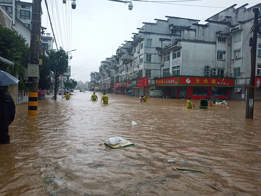 7月7日,安徽黄山市各区县普降大暴雨,多个地点24小时降雨超过200毫米,个别区域累计降水255毫米,达到特大暴雨级别。强降雨导致多条河流猛涨,山洪暴发,城区多处路段出现积水,给市民出行、车辆行驶带来安全隐患。
